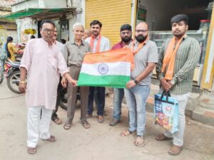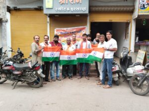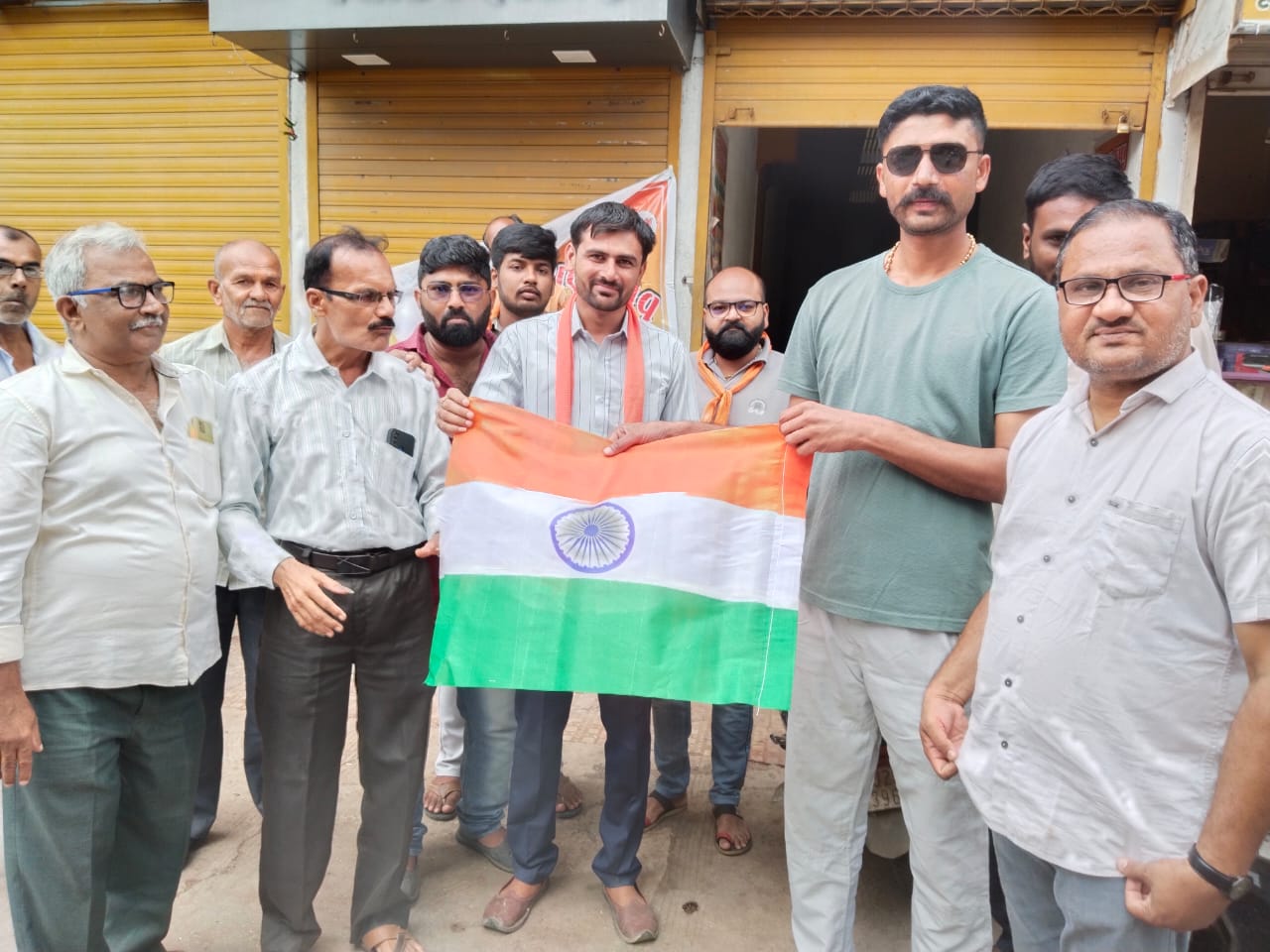 શહેર ખાતે ભારતીય જનતા યુવા મોરચા દ્વારા બસ સ્ટેન્ડ તેમજ જાહેર સ્થળો ખાતે તિરંગા નું વિતરણ કરવામાં આવેલ