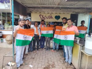 રાણાવાવ શહેર ખાતે ભારતીય જનતા યુવા મોરચા દ્વારા બસ સ્ટેન્ડ તેમજ જાહેર સ્થળો ખાતે તિરંગા નું વિતરણ કરવામાં આવેલ
