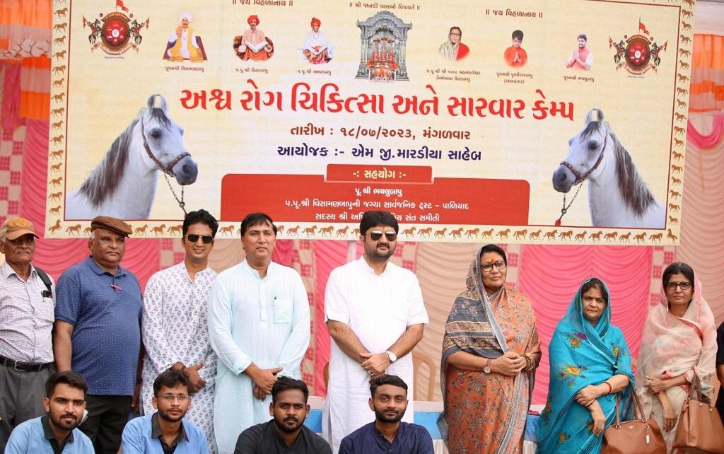 તારીખ ૧૮/૭/૨૦૨૩ ને મંગળવાર ના રોજ પાળિયાદ પરમ પૂજ્ય શ્રી વિસામણબાપુ ની જગ્યા ખાતે સ્વ. આર. ડી. ઝાલા ની સ્મરણાંજલિ નિમિત્તે કામધેનુ યુનિવર્સિટી ની બે વેટેનરી કોલેજો જુનાગઢ અને આણંદ ના તબીબી નિષ્ણાંતો દ્વારા અશ્વ રોગ નિદાન અને સારવાર શિબિર નું આયોજન થયેલ શિબિરનાં દિપ પ્રાગટયમાં પ. પૂ. શ્રી વિસામણબાપુ ની જગ્યા ના મહંત શ્રી શ્રી ૧૦૦૮ મહામંડલેશ્વર નિર્મળાબા, જગ્યાનાં વ્યવસ્થાપક અને અખિલ ભારતીય સંત સમિતિનાં કાયમી સદસ્ય પૂજય ભયલુબાપુ , ડૉ. પી.એચ. ટાંક , ડૉ. મારડીયા (નિવૃત્ત નિયામક ) તેમજ સ્વ. આર. ડી. ઝાલા નાં દિકરીબા પુનિતાબા અને ભાવનગર મંગલ મહેલ મમતાબા હાજર રહેલ સ્વ. ઝાલા સાહેબની સ્મરણાંજલિ તથા અશ્વ નું વર્તમાન સમય માં સાતત્વ અને સ્વાસ્થયનું મહત્ત્વ જેવી વાતોનું સંકલન પૂર્ણ કરી જગ્યાની ફૂલવાડી માં પાંચાળ અને ભાલ પ્રદેશનાં અશ્વપાલકો પોતાના અશ્વો સાથે શિબિરમાં ભાગ લીધેલ સર્જરી ગાયનેકોલોજી અને મેડીશીનનાં જુદા જુદા નિષ્ણાંતો દ્વારા કુલ ૯૬ જેટલા અશ્વોની ગર્ભાશય ની ચકાસણી, પગ લંગડાશની તપાસ , આંખ ચામડી તથા અન્ય રોગો ની લેબોરેટરી તપાસ અને સારવાર ની કામગીરી થઈ તેમજ બધા જ અશ્વોને ધનુર અને ઝેરબાજ અને જીવલેણ થાય તેવા રોગો સામે ની રશી મૂકાઈ અને પેટસૂડ ની બીમારી ઘટાડવા અશ્વોને કરીમિયા ની દવા કરેલ આશરે ૨૦૦ જેટલા અશ્વપાલકો અને અશ્વ પ્રેમીઓ એ ભાગ લીધેલ આ કાર્યક્રમ માં શ્રી કામધેનુ યુનિવર્સિટીના ડૉ. ભટ્ટ , ડૉ હડિયા , ડૉ. વાળા , ડૉ. વડલિયા , ડૉ. ગર્ગ , ડૉ. સાવરકર અને ડૉ. ઉમેશ પટેલ સાહેબ ની ટીમ સાથે અનુસ્નાતક વેટેનરી રેસિડેન્ટ સૌએ મળીને જુદા જુદા અશ્વોનું નિદાન અને સારવાર કરી ત્યારબાદ જગ્યાનાં મહંત પ. પૂ. શ્રી શ્રી ૧૦૦૮ મહામંડલેશ્વર શ્રી નિર્મળાબા એ આશીર્વચન અને પૂજ્ય ભયલુબાપુ અને જસદણ રાજવી સત્યજીતકુમાર એ પુરી ટીમ ને અભિનંદન પાઠવેલ અને પૂજ્ય ભયલુબાપુ દ્વારા જુનાગઢ અને આણંદ ના સૌ ડોક્ટર્સ અને એમની પુરી ટીમ નું શાલ અને ઠાકર ના ફોટો આપી સૌ નું સન્માન કરેલ.