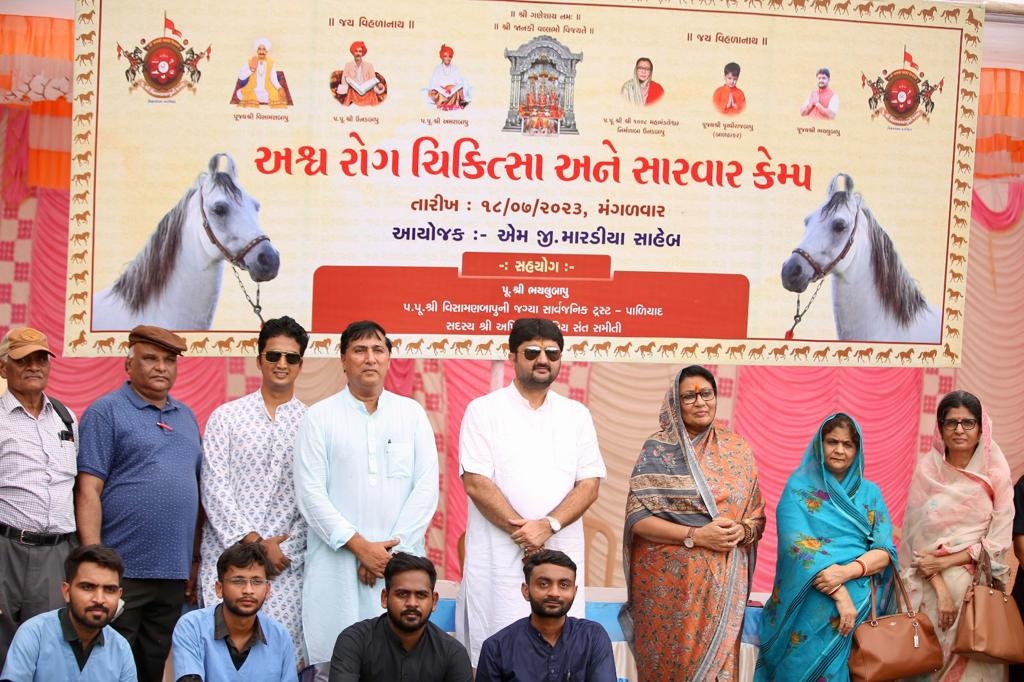 તારીખ ૧૮/૭/૨૦૨૩ ને મંગળવાર ના રોજ પાળિયાદ પરમ પૂજ્ય શ્રી વિસામણબાપુ ની જગ્યા ખાતે સ્વ. આર. ડી. ઝાલા ની સ્મરણાંજલિ નિમિત્તે કામધેનુ યુનિવર્સિટી ની બે વેટેનરી કોલેજો જુનાગઢ અને આણંદ ના તબીબી નિષ્ણાંતો દ્વારા અશ્વ રોગ નિદાન અને સારવાર શિબિર નું આયોજન થયેલ શિબિરનાં દિપ પ્રાગટયમાં પ. પૂ. શ્રી વિસામણબાપુ ની જગ્યા ના મહંત શ્રી શ્રી ૧૦૦૮ મહામંડલેશ્વર નિર્મળાબા, જગ્યાનાં વ્યવસ્થાપક અને અખિલ ભારતીય સંત સમિતિનાં કાયમી સદસ્ય પૂજય ભયલુબાપુ , ડૉ. પી.એચ. ટાંક , ડૉ. મારડીયા (નિવૃત્ત નિયામક ) તેમજ સ્વ. આર. ડી. ઝાલા નાં દિકરીબા પુનિતાબા અને ભાવનગર મંગલ મહેલ મમતાબા હાજર રહેલ સ્વ. ઝાલા સાહેબની સ્મરણાંજલિ તથા અશ્વ નું વર્તમાન સમય માં સાતત્વ અને સ્વાસ્થયનું મહત્ત્વ જેવી વાતોનું સંકલન પૂર્ણ કરી જગ્યાની ફૂલવાડી માં પાંચાળ અને ભાલ પ્રદેશનાં અશ્વપાલકો પોતાના અશ્વો સાથે શિબિરમાં ભાગ લીધેલ સર્જરી ગાયનેકોલોજી અને મેડીશીનનાં જુદા જુદા નિષ્ણાંતો દ્વારા કુલ ૯૬ જેટલા અશ્વોની ગર્ભાશય ની ચકાસણી, પગ લંગડાશની તપાસ , આંખ ચામડી તથા અન્ય રોગો ની લેબોરેટરી તપાસ અને સારવાર ની કામગીરી થઈ તેમજ બધા જ અશ્વોને ધનુર અને ઝેરબાજ અને જીવલેણ થાય તેવા રોગો સામે ની રશી મૂકાઈ અને પેટસૂડ ની બીમારી ઘટાડવા અશ્વોને કરીમિયા ની દવા કરેલ આશરે ૨૦૦ જેટલા અશ્વપાલકો અને અશ્વ પ્રેમીઓ એ ભાગ લીધેલ આ કાર્યક્રમ માં શ્રી કામધેનુ યુનિવર્સિટીના ડૉ. ભટ્ટ , ડૉ હડિયા , ડૉ. વાળા , ડૉ. વડલિયા , ડૉ. ગર્ગ , ડૉ. સાવરકર અને ડૉ. ઉમેશ પટેલ સાહેબ ની ટીમ સાથે અનુસ્નાતક વેટેનરી રેસિડેન્ટ સૌએ મળીને જુદા જુદા અશ્વોનું નિદાન અને સારવાર કરી ત્યારબાદ જગ્યાનાં મહંત પ. પૂ. શ્રી શ્રી ૧૦૦૮ મહામંડલેશ્વર શ્રી નિર્મળાબા એ આશીર્વચન અને પૂજ્ય ભયલુબાપુ અને જસદણ રાજવી સત્યજીતકુમાર એ પુરી ટીમ ને અભિનંદન પાઠવેલ અને પૂજ્ય ભયલુબાપુ દ્વારા જુનાગઢ અને આણંદ ના સૌ ડોક્ટર્સ અને એમની પુરી ટીમ નું શાલ અને ઠાકર ના ફોટો આપી સૌ નું સન્માન કરેલ.