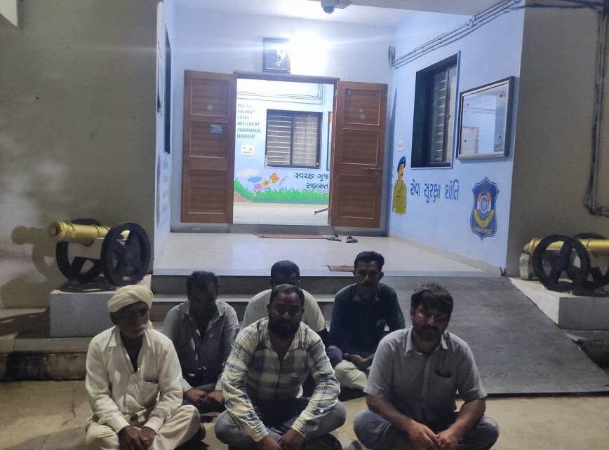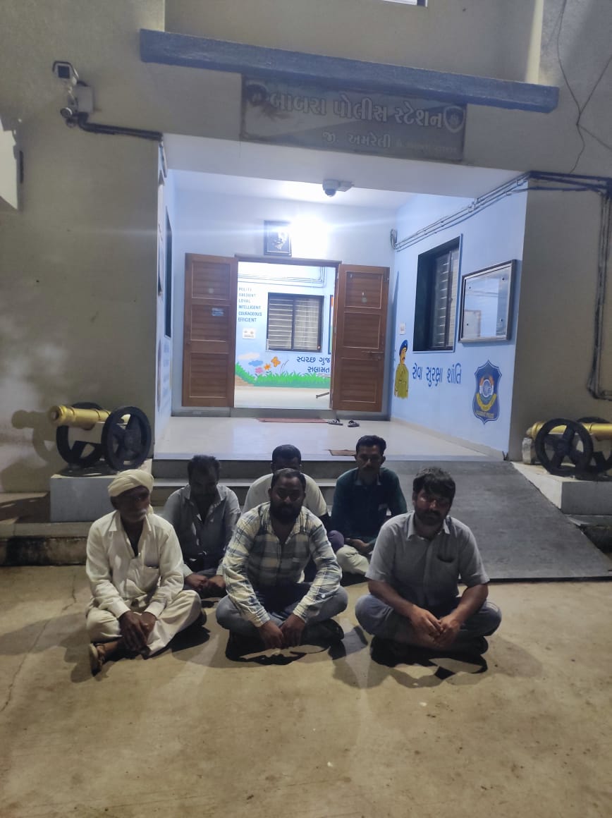કાર્યવાહી કરવા સુચના અને માર્ગદર્શન આપેલ જે અન્વયે આર.ડી.ચૌધરી પો.ઇન્સ સા. બાબરા પો.સ્ટે નાઓની સુચના અને માર્ગદર્શન નીચે બાબરા પો.સ્ટે.ના નીલવડા ગામે સ્મશાન પાસે ખુલ્લી જગ્યામાં જાહેરમાં ગે પતાના પના તથા પૈસા વડે હારજીતનો જુગાર રમતા છ ઇસમોને