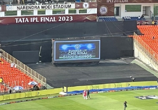 રવિવારે ૨૮મી મેના રોજ અમદાવાદમાં વરસાદના કારણે ૈંઁન્ની ફાઈનલ મેચ રદ થયા બાદ તેને રિઝર્વ ડે પર યોજવાનો ર્નિણય લેવામાં આવ્યો છે. પરંતુ હવે વરસાદની સંભાવનાને જાેતા કેટલાક ગણિત લગાવવામાં આવી રહ્યા છે. આ પહેલા મેદાન પર મૂકેલી મોટી સ્ક્રીન પર ચેન્નાઈ સુપર કિંગ્સને રનરઅપ દર્શાવી તેવાઈ હોય તેવો ફોટો વાયરલ થઈ રહ્યો છે. આ ફોટોને લઈને ક્રિકેટ રસીકોના મગજમાં ઘણાં સવાલો ઉભા થઈ રહ્યા છે. સ્ટેડિયમની મોટી સ્ક્રીન પર ચેન્નાઈ સુપર કિંગ્સ ‘રનરઅપ’ હોવાનો મેસેજ સામે આવ્યા પછી હવે તેની તસવીરો વાયરલ થઈ રહી છે. જે જાેઈને લોકો સવાલ કરી રહ્યા છે કે, શું સ્ટેડિયમની ટેક ટીમ ટાઈમ મશીન લઈ આવી છે કે પછી કે અમને પલળેલી સીટની ધાર પર બેસાડવાની એક વિચિત્ર કળા હતી? એક શખ્સે ટિ્વટર પર લખ્યું છે કે આતો એવું થયું કે ફિલ્મના ટ્રેલરના બદલે અકસ્માતે ફિલ્મનો અંત અપલોડ કરી દેવામાં આવ્યો હોય. ઝ્રજીદ્ભના આ ફેન્સ આ વાયરલ થયેલી તસવીર જાેઈને ગુસ્સે પણ થઈ રહ્યા છે અને પોતાનો ગુસ્સો પ્રગટ કરી રહ્યા છે. મેચ શરુ થાય તે પહેલા આ પ્રકારનો સંદેશ સ્ક્રીન પર જાેઈને ફેન્સના મગજમાં અનેક સવાલો ઉઠી રહ્યા છે. મહત્વનું છે કે જે બે ટીમો મેચના અંત ભાગમાં પહોંચવામાં સફળ થઈ છે તે બે ટીમો વચ્ચે જ ૈંઁન્ ૨૦૨૩ની શરુઆત થઈ હતી. આ સિવાય અમદાવાદના જે નરેન્દ્ર મોદી સ્ટેડિયમ પરથી જ મેચની શરુઆત થઈ હતી અને બન્ને ટીમો ફરી એકવાર ફાઈનલ મેચ રમવા માટે આજ મેદાન પર એક થઈ રહ્યા છે. જાેકે, રવિવારે ૨૮મી મેએ મેચ વરસાદના કારણે રમાઈ નહોતી અને આજે રિઝર્વ ડે પર મેચ શરુ થવાની છે જાેકે, આજે પણ વરસાદ વિલન બને તેવી સંભાવનાઓ છે. અમદાવાદમાં ૈંઁન્ની ફાઈનલ મેચ આજે રિઝર્વ ડે પર શિડ્યુલ કરવામાં આવી છે ત્યારે અમદાવાદ હવામાન કેન્દ્રના વૈજ્ઞાનિક વિજીનલાલે જણાવ્યું છે કે, અમદાવાદમાં આજે સાંજે તથા રાતના સમયે ગાજવીજ સાથે વરસાદ થવાની સંભાવનાઓ છે. હળવાથી ભારે વરસાદ પડવાની સાથે ૪૦-૫૦ કિલોમીટર પ્રતિ કલાકની ઝડપે પવન ફૂંકાવાની આગાહી કરવામાં આવી છે.