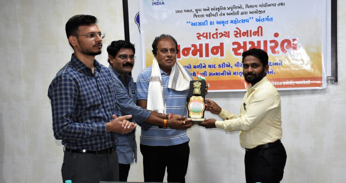 અમરેલી તા.૦૫ જુલાઈ,૨૦૨૩ (બુધવાર) આઝાદી કા અમૃત મહોત્સવ અંતર્ગત સમગ્ર રાજ્યમાં દેશના સ્વાતંત્ર્ય સેનાનીઓનું સન્માન કરવામાં આવી રહ્યું છે. માતૃભૂમિ કાજે અનેક વીર વીરાંગના, સ્વાતંત્ર્ય સેનાનીઓએ પોતાનું સમગ્ર જીવનનું બલિદાન રાષ્ટ્રને આઝાદ કરવામાં આપ્યું છે. સ્વાતંત્ર્ય સેનાનીઓનું સન્માન એ ગૌરવની ક્ષણો છે. ભારત આજે આઝાદીના ૭૫ વર્ષની ભવ્ય ઉજવણી કરી રહ્યું છે.