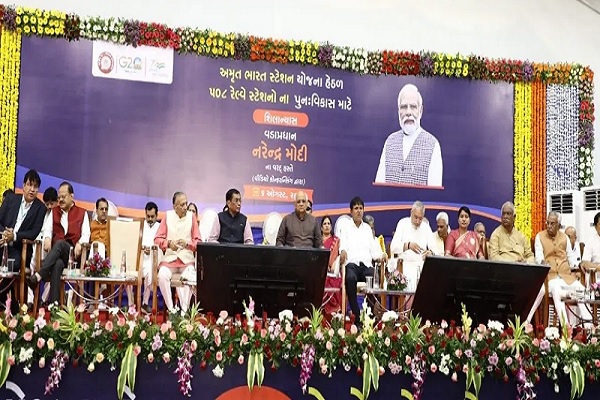 ઁસ્ મોદીએ નવી દિલ્હીથી અમૃત ભારત સ્ટેશન યોજના અન્વયે ગુજરાતના ૨૧ સહિત દેશના ૫૦૮ રેલ્વે સ્ટેશનોના પુનઃ નિર્માણનો પ્રારંભ કરાવ્યો. આ પ્રસંગે મુખ્યમંત્રી ભૂપેન્દ્ર પટેલ અસારવા રેલ્વે સ્ટેશન ખાતે ઉપસ્થિતિ રહ્યા.મુખ્યમંત્રીએ ગુજરાતના કુલ ૮૭ સ્ટેશનોનો અમૃત ભારત સ્ટેશન યોજનામાં સમાવેશ કરી આઇકોનિક પ્લેસીસ બનાવાની જાહેરાત કરી. ગુજરાતમાં રેલ્વે સ્ટેશનો અને ઇન્ફ્રાસ્ટ્રક્ચરની સુવિધાઓ માટે વર્ષ ૨૦૨૩-૨૪માં રૂ. ૮૩૨ કરોડ ફાળવાયા. મુખ્યમંત્રી ભૂપેન્દ્ર પટેલે આ પ્રસંગે જણાવ્યું કે, વડાપ્રધાન નરેન્દ્રભાઈ મોદીના દૃષ્ટિવંત નેતૃત્વમાં રેલ્વે સેવાઓ દેશની સંસ્કૃતિ, પર્યટન અને તીર્થસ્થાનને જાેડવાનું મહત્ત્વપૂર્ણ યાતાયાત માધ્યમ બની છે. મુખ્યમંત્રી ભૂપેન્દ્ર પટેલે વડોદરામાં નિર્માણ થઇ રહેલી ગતિશકિત યુનિવર્સિટી અને દાહોદમાં રેલ્વે એન્જિન ફેક્ટરી પુનઃ કાર્યરત થવામાં વડાપ્રધાનના વિઝનની વિશદ છણાવાટ કરી હતી. આ કાર્યક્રમ પ્રસંગે અસારવા રેલ્વે સ્ટેશન ખાતે રાજ્યકક્ષાના મંત્રી જગદીશભાઈ વિશ્વકર્મા, અમદાવાદ શહેરના મેયર, મુખ્ય સચિવ, અમદાવાદ જિલ્લા કલેકટર, ધારાસભ્યઓ સહિત રેલ્વેના અધિકારીઓ અને પદાધિકારીઓ તેમજ મોટી સંખ્યામાં નગરજનો ઉપસ્થિત રહ્યા હતા.