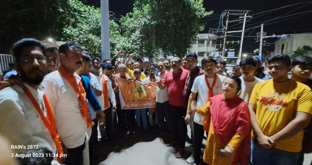 જામનગરમાં ખંભાળિયા ગેટ બહાર આવેલ શ્રી માધવરાયજી મંદિરમાં દર્શનાર્થી લોકોની શ્રદ્ધાને લઇ પુરુષોત્તમ માસમાં અનેક ઉત્સવ ઉજવાય રહ્યા છે. ત્યારે આ મંદિરની બાજુમાં હિન્દુ સેના દ્વારા પણ પુરુષોત્તમ માસ નિમિત્તે શ્રાવણ માસને વધાવવા 50 ફૂટથી વધારે ઊંચાઈ ઉપર 21 ફૂટ નો ભગવો ધ્વજ લહેરાવી જય જય શ્રી રામના સૂત્રોચારથી ખંભાળિયા ગેટ ગુંજી ઉઠ્યું હતું. સાથોસાથ ફટાકડા અને હિન્દુ સેના ના ખેસધારી યુવાનોના જોશથી આ સર્કલ ભગવામય બની ગયેલું હતું. આ કાર્યક્રમ દરમિયાન કાર્યક્રમના આયોજક હિન્દુ સેનાના પૂર્ણકાલીન કિશન નંદા તેમજ હિંદુ સેના ગુજરાત પ્રમુખ પ્રતીક ભટ્ટ, આ જ વિસ્તારના ભાજપના કોર્પોરેટર કેતન નાખવા, પ્રવિણાબેન, અખિલ ભારતીય વિદ્યાર્થી પરિષદના સંજીત નાખવા, આજ વોર્ડના ભાજપ પ્રમુખ મુકેશ વસોયા, મુકેશ મંગી, એડવોકેટ સંજય દાઉદિયાની ખાસ ઉપસ્થિતિમાં હિન્દુ સેના શહેર પ્રમુખ દીપક પિલાઈ,શહેર મંત્રી મયુર ચંદન, જિલ્લા યુવા ઉપપ્રમુખ ધીરેન નંદા,શહેર યુવા પ્રમુખ યશાંક ત્રિવેદી, મેહુલ મહેતા સચિન જોશી, આયુષ સોલંકી, બંશી પટેલ, એબિવિપીના દિવ્યરાજસિંહ, ખુશાલ બોસમીયા, ઓમ ભાનુશાલી વગેરે હાજર રહી ભગવો ધ્વજ ફરકાવ્યો હતો.