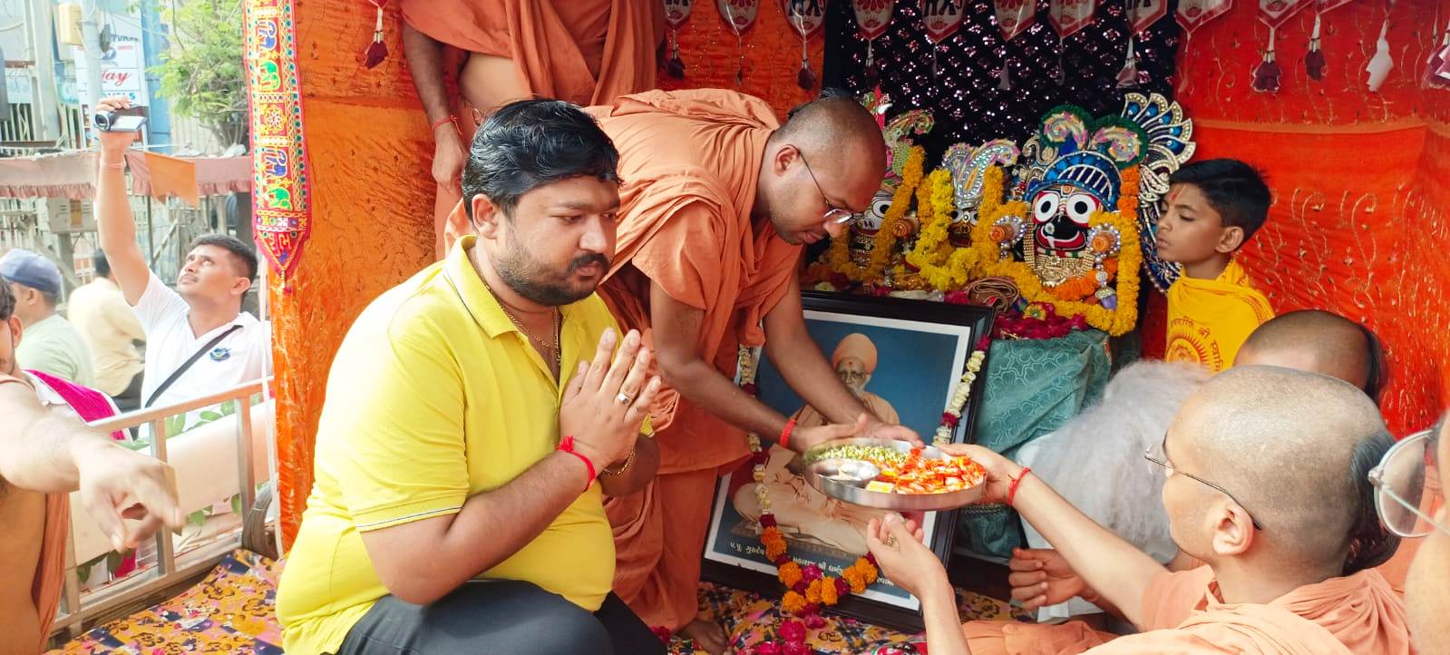 નગર સેવક વિજયભાઇ રાઠોડે રથયાત્રાનું સ્વાગત કરી ભગવાનને ફુલહાર પહેરાવી ધન્યતા અનુભવી હતી.
