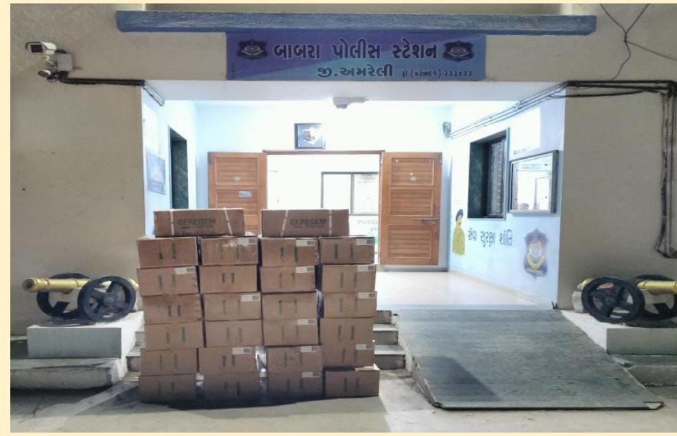 ભાવગનર રેન્જ આઇ.જી.પી શ્રી ગૌતમ પરમાર સાહેબ નાઓએ ભાવનગર રેન્જના જીલ્લાઓમા નશાયુક્ત પ્રવાહિનું ગેરકાયદેસરનુ વેચાણ કરતા ઇસમો ઉપર કાર્યવાહિ કરવા સુચના આપેલ હોય અમરેલી પોલીસ અધિક્ષક સાહેબ શ્રી હિમકરસિંહ સાહેબ નાનોએ અમરેલી જીલ્લામાં કફ સિરપ અન્ય આયુર્વેદિક દવાઓના નામે આલ્કોહોલિક દવાઓનુ ડોક્ટરશ્રીના પ્રિસ્ક્રિશન વગર પોતાના આર્થિક ફાયદા સારૂ ગેરકાયદેસર વેચાણ કરતા ઇસમો સામે કાર્યવાહિ કરવા સુચના અને માર્ગદર્શન આપેલ હતું જે અનુસંધાને નાયબ પોલીસ અધિક્ષકશ્રી જે.પી.ભંડારી સાહેબ નાઓના માર્ગદર્શન હેઠળ બાબરા પોલીસ * સ્ટેશનના I/C પોલીસ ઇન્સપેક્ટર આર.એચ.રતનનાઓની સુચના માર્ગદર્શન હેઠળ બાબરા પોલીસ સ્ટેશનના જામબરવાળા આ.પી.ના હેડ કોન્સ. ભરતભાઇ પ્રવિણભાઇ ડોડીયા તથા પો.કોન્સ બ્રિજરાજભાઇ કનુભાઇ વાળા આપો. વિસ્તારમા પેટ્રોલીંગમાં હોય અને ગળકોટડી ગામે બસસ્ટેન્ડ પાસે રોડ ઉપર એક હ્યુન્ડાઇ કંપની એસેન્ટ ફોરવ્હિલ ગાડી નં. GJ 16 K 3839 માંથી તથા શકદારના રહેણાંક મકાનેથી Ayurvedic proprietary medicine GEREGEM ASV-ARISHTHA Curtains self generated alcohol not more than 11% w લખેલ ૪૦૦ મી.લી.ની કુલ બોટલ નંગ ૧૦૪ કિં.રૂ.૧,૫૬,૦૦૦/ નો મુદ્દામાલ કોઇ સક્ષમ અધિકારીની પાસ પરમીટ વગર હેરફેર કરતા મળી આવતા નશાયુક્ત બોટલો માથી એફ.એસ.એલ તથા ફુડ એન્ડ ડ્રગ્સ વિભાગની તપાસણી અર્થે સેમ્પલ તરીકે લઇ તમામ બોટલો શકપડતી મીલકત તરીકે કબ્જે લઇ તેમજ હ્યુન્ડાઇ કંપની એસેન્ટ ફોરવ્હિલ ગાડી નં. GJ 16 × 3839 ના ચાલક પાસેથી આર.ટી.ઓ લગત કોઇ કાગળો મળી આવેલ ન હોય જેથી વાહન ડીટેઇન કરી પકડાયેલ ગયેલ ઇસમ વિરૂધ્ધ આગળની કાર્યવાહિ હાથ ધરવામા આવેલ છે. પકડાયેલ ઇસમ