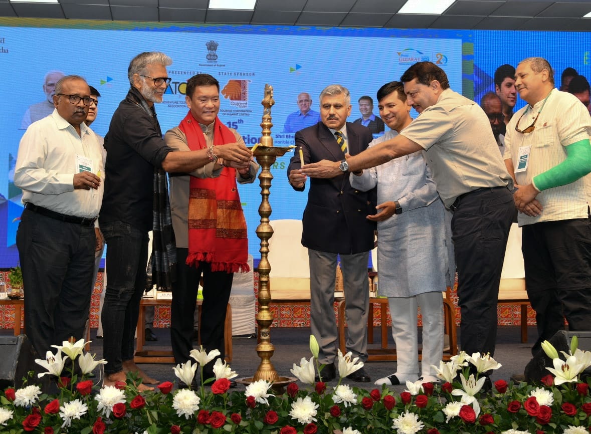 ક્રોસ બોર્ડર પ્રવાસનને સુરક્ષા માટે આર્મીના જવાનો હંમેશા તૈયાર રહેશે તેવી તત્પરતા દર્શાવી હતી. ઉદ્ઘાટન સત્રના પ્રારંભે એડવેન્ચર ટૂર ઓપરેટર એસોસિએશન ઓફ ઇન્ડિયાના પ્રમુખ શ્રી અજિત બજાજે સૌનું સ્વાગત કરી અધિવેશનની ભૂમિકા આપી હતી. અંતે ગુજરાત પ્રવાસન નિગમના એમડી ડો. સૌરભ પારગીએ આભારદર્શન કર્યું હતું. આ સેમિનારના સ્થળે વિવિધ રાજ્યોના પ્રવાસનને ઉજાગર કરતા આકર્ષણોના સ્ટોલ ઉભા કરાયા છે જેનું પણ મહાનુભાવો ના હસ્તે ઉદ્ઘાટન કરવામાં આવ્યું હતું. આ વેળાએ ધારાસભ્ય શ્રી પ્રવીણભાઈ માળી, સંસ્થાના ઉપપ્રમુખ શ્રી વૈભવ કાલા, અધિકારીઓ સર્વ શ્રી વ્યંકટેશ કટારે, અનિલ ઓરો, મોડેલ શ્રી મિલિંદ સોમન ઉપસ્થિત રહ્યા હતા.