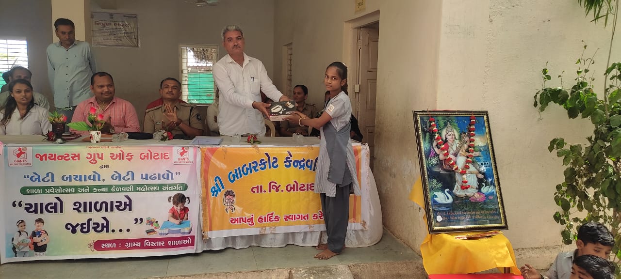 આજરોજ બાબરકોટ કે.વ.શાળામાં શાળા પ્રવેશોત્સવ નું આયોજન કરવામાં આવ્યું. આ કાર્યક્રમ માં બોટાદ જિલ્લાના એસ.પી.કે.એફ.બલોળીયા સાહેબ તથા ઈજનેર સાહેબ તથા ચિરાગ વાગમશી સાહેબ તથા પાળીયાદ પી.એસ.આઈ રાવલ મેડમ આ ઉપરાંત ગામ ના અગ્રણી સરપંચ તથા કનુભાઈ ધાધલ તથા કનુભાઈ ખાચર તથા એસ.એમ.સી અધ્યક્ષ ખોડાભાઈ ડાભી તથા તલાટી અશ્વિનભાઈ તથા આરોગ્ય શાખા માંથી ડો.ડોલીબેન તેમજ મોટી સંખ્યામાં ગ્રામજનો ને વાલીગણ નવા બાલવાટિકા ,અને ધોરણ 1 ના પ્રવેશ મેળવતા બાળકોના સ્વાગત કરવા હાજરી આપેલ. શાળાના આચાર્ય તુષારભાઈ શાહ અને સમગ્ર સ્ટાફ મિત્રો એ સરસ આયોજન કરયુ હતું. કનુભાઈ ધાધલ તરફથી બાળકોને બટુકભોજન, તેમજ જાયન્ટસ ગ્રુપ તરફ થી પ્રવેશ પામતા બાળકોને કીટ નું વિતરણ કરેલ.શાળાના આચાર્ય તરફથી તેજસ્વી બાળકોને ઇનામ આપી ને સન્માન કરવામાં આવ્યુ.