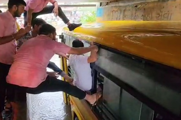 નડિયાદ શહેર અને ગ્રામ્ય વિસ્તારમાં આજે વહેલી સવારથી વરસાદ વરસી રહ્યો છે. વરસાદી પાણીથી શ્રેયસ ગરનાળામાં કોલેજના વિદ્યાર્થીઓને લઈ જતી બસ અટવાઈ હતી. ગરનાળામાં પાણી ભરેલું હોવા છતાં ડ્રાઇવરે ગરનાળામાંથી બસ પસાર કરવાનું સાહસ કર્યુ હતું. જાેકે પાણીની વચ્ચે બસ અટવાતા વિદ્યાર્થીઓ ફસાયા હતા. જે બાદ સ્થાનિક નાગરિકોએ વિદ્યાર્થીઓનું રેસ્ક્યુ કર્યું હતું.આણંદ જિલ્લામાં સાવર્ત્રિક વરસાદ વરસ્યો છે. સોજીત્રા, દાલી, રૂપજ અને ઉમરેઠમાં વરસાદ ધોધમાર વરસ્યો છે. રાજ્યમાં છેલ્લા ૨૪ કલાકમાં ૧૨ જિલ્લાના ૩૯ તાલુકાઓમાં વરસાદ નોંધાયો છે. સવારના બે કલાકમાં ૨૬ તાલુકામાં વરસાદ વરસ્યો છે. ૩ તાલુકામાં બેથી ચાર ઈંચ વરસાદ પડ્યો છે, જ્યારે દાહોદમાં ૪ ઈંચ વરસાદ ખાબક્યો છે. વડોદરાના વાઘોડીયા પંથકમાં વહેલી સવારે જ ગાજવીજ સાથે વરસાદ થયો હતો. ઉપરાંત ડભોઈના ઝારોલા, વાગા, શિનોર ચાર રસ્તા, એસટી ડોપો, સહિતના વિસ્તારોમાં વરસાદ વરસ્યો હતો. હવામાન વિભાગની આગાહી મુજબ દક્ષિણ ગુજરાતમાં ભારે વરસાદ પડવાની સંભાવના છે.