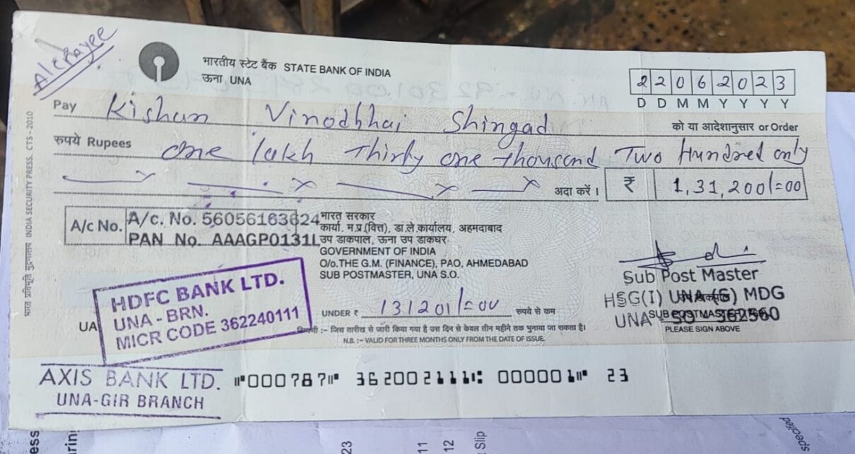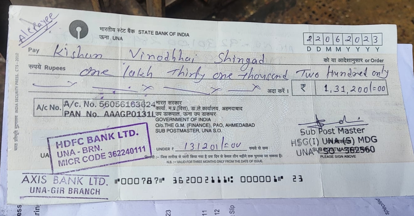 ઓફીસમાં આ ગ્રાહક સીવાયના અન્ય ચાર, પાંચ ગ્રાહકોના ચેક રીર્ટન થયા હોવાનું ખુદ પોસ્ટ ઓફીસના અધિકારીએ ગ્રાહકને