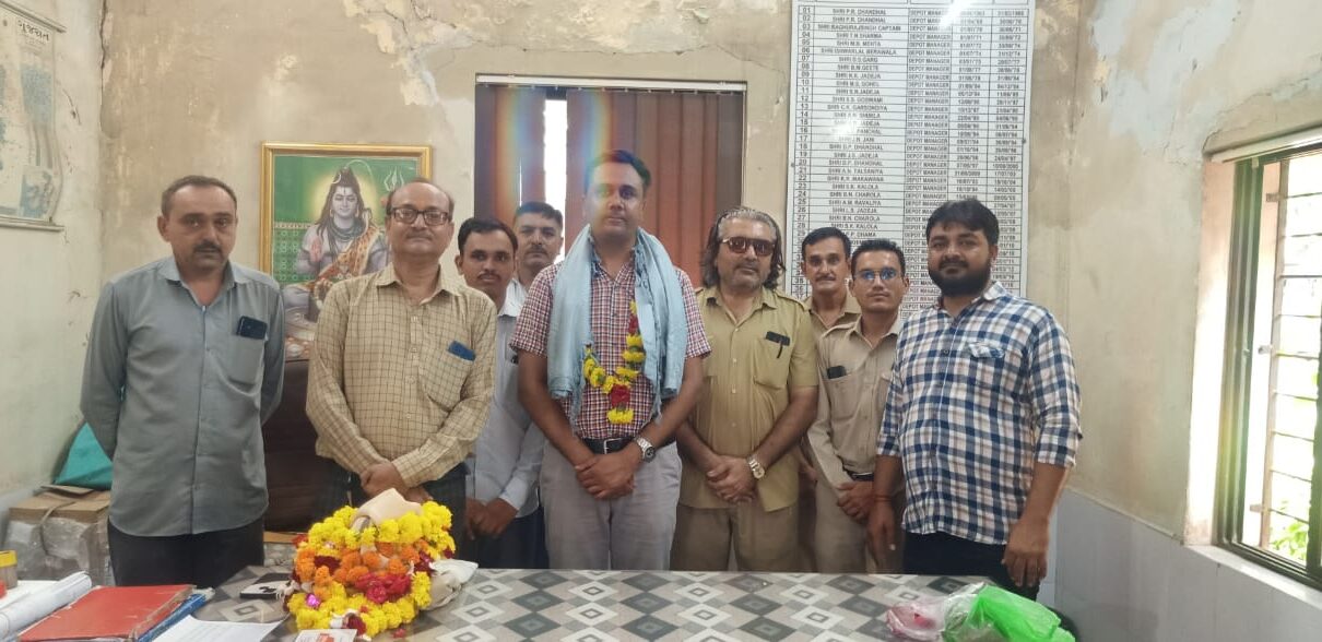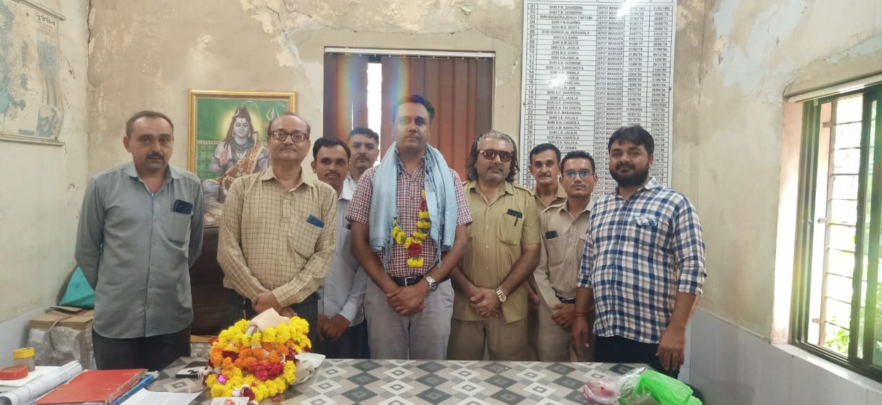 (2).મજૂર મહાજન મહાસંઘ ના વીરેન્દ્રસિંહ જાડેજા. અને તેમના હોદેદારો હાજર રહ્યા હતા.તમામ યુનિયનો દ્વારા ડેપો મેનેજર શ્રી નું ભવ્ય સ્વાગત કર્યું હતું..