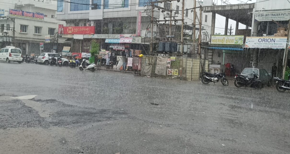 આજે વહેલી સવારથી જ બોડેલી તાલુકામાં વરસાદી માહોલ જોવા મળી રહ્યો છે કાળા ડિબાંગ વાદળો સાથે બોડેલી પથકમાં ધોધમાર વરસાદ પડ્યો હતો. વરસાદને લઈને રોડ અને સુસાયટીના રસ્તા ઉપર પાણી ભરાયા હતા