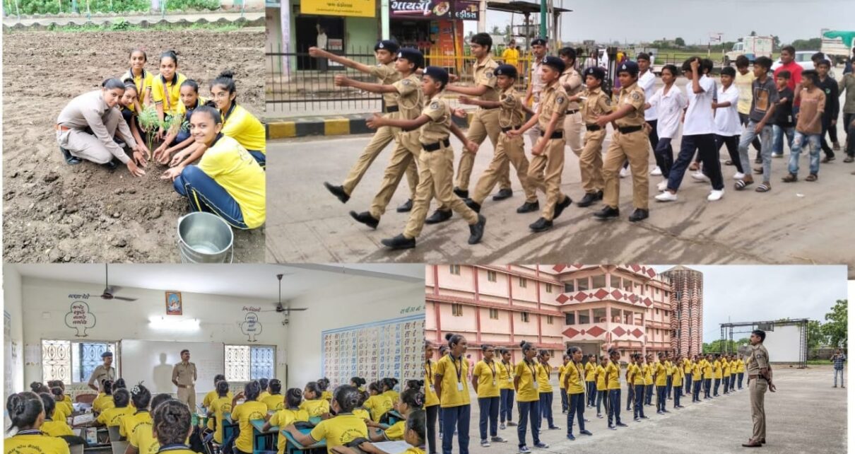 દરેક પોલીસ સ્ટેશન દીઠ એક સરકારી શાળા પસંદ કરી તેના સ્ટુડન્ટ પોલીસ કેડેટ SPC સ્કીમ શરૂ કરવામાં આવેલ છે આઠમા ધોરણમાં 22 વિદ્યાર્થીઓ અને 22 વિદ્યાર્થીનીઓ પસંદ કરી તેમને બે વર્ષ માટે ઇન્ડોર તથા આઉટડોર તાલીમ આપવામાં આવી રહી છે વર્ષમાં ત્રણ કેમ્પ કરવામાં આવી રહ્યા છે. ત્યારે જામકંડોરણા માં આજે કલરવ સ્કૂલ થી બસ સ્ટેશન સુધી પરેડ કરવામાં આવી હતી આ પરેડ માં 90 વિદ્યાર્થીઓ 4 સી પી ઓ..5 પોલીસ અને 3 જી આર ડી જવાનો પરેડ માં જોડાયા હતા.. જામકરોણા ની કલરવ સ્કુલ ખાતે વિદ્યાર્થીઓ અને જોડાયેલ કર્મચારીઓ દ્વારા વૃક્ષારોપણ કરવામાં આવ્યું હતું.. SPC વિદ્યાર્થીઓની પરેડ માં શારીરિક કૌશલ્ય અને શિસ્ત બંધ પરેડ ની પ્રતીતિ ગામ લોકોએ નિહાળી હતી વધુમાં પી એસ આઇ વી.એમ.ડોડીયા દ્વારા વિદ્યાર્થીઓને મોટીવેશન પૂરું પાડ્યું હતું.. વિદ્યાર્થીઓ દ્વારા વૃક્ષ વાવો જીવન બચાવો વૃક્ષોનું જતન આબાદ વતન એક બાર એક ઝાડ વૃક્ષો વાવો સમૃદ્ધિ લાવો વૃક્ષો વાવો વરસાદ લાવો વૃક્ષો વાવો પર્યાવરણ બચાવો વૃક્ષ ધરતીનું સંગીત છે ઋતુઓનું સૌંદર્ય છે આકાશમાં વ્યાપેલી કવિતા છે વિવિધ સૂત્રો ઉચ્ચાર કરીને લોકોને વૃક્ષ વાવવા અપીલ કરી હતી..