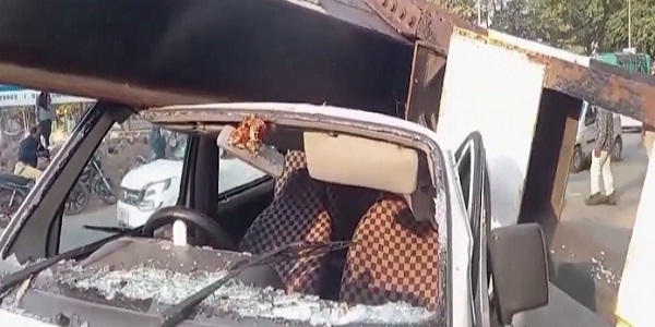 રેલવે અંડર બ્રિજમાં લોખંડનો ભારે ગડર કાર પર પડ્યો