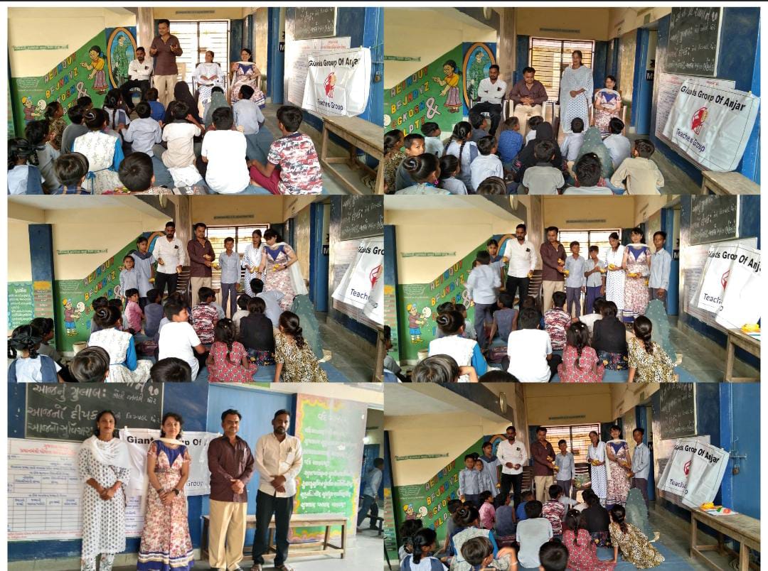 શાળા નંબર 10 અંજાર માં ગ્રુપના પ્રેસિડેન્ટ બંદુ રીટા સી,મંત્રી કામિની ધોળકિયા , શાળાના આચાર્યશ્રી મનહર ભાભોર, ખુમાણ સોલંકી બાળકોને સ્વચ્છતા વિશે જાણકારી આપી સ્વચ્છતા જીવન માટે કેટલી જરૂરી છે. તે બતાવ્યું