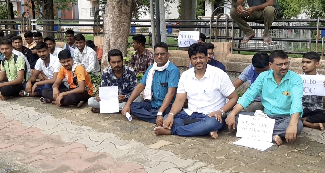 છોટાઉદેપુર નગરના જિલ્લા સેવાસદન કલેકટર કચેરી સામે રાષ્ટ્રીય આદિવાસી એકતા પરિષદના નેજા હેઠળ યુનિફોર્મ સિવિલ કોડ UCC ને લઈને એક દિવસીય ઘરણા પર આદિવાસી સમાજના આગેવાનો બેઠા હતા, આદિવાસી સમાજના આગેવાન અને કોંગ્રેસના નેતા સંગ્રામસિંહ રાઠવા સહિતના આદિવાસી સમાજના આગેવાનો ઘરના પર બેઠા હતા, યુનિફોર્મ સિવિલ કોડ છે તે બધા સમાજને તેનાથી નુકસાન થવાનું છે સમગ્ર આદિવાસી સમાજ આ કાયદાનો વિરોધ કરી રહ્યા છે તેવું આદિવાસી સમાજના આગેવાનોએ જણાવ્યું હતું. ઘરણા પર બેસેલ આદિવાસી સમાજના આગેવાન અને કોંગ્રેસના નેતા સંગ્રામસિંહ રાઠવા સહિતના આદિવાસી સમાજના આગેવાનોને પોલીસ દ્વારા ડીટેઇન કરવામાં આવ્યા હતા .