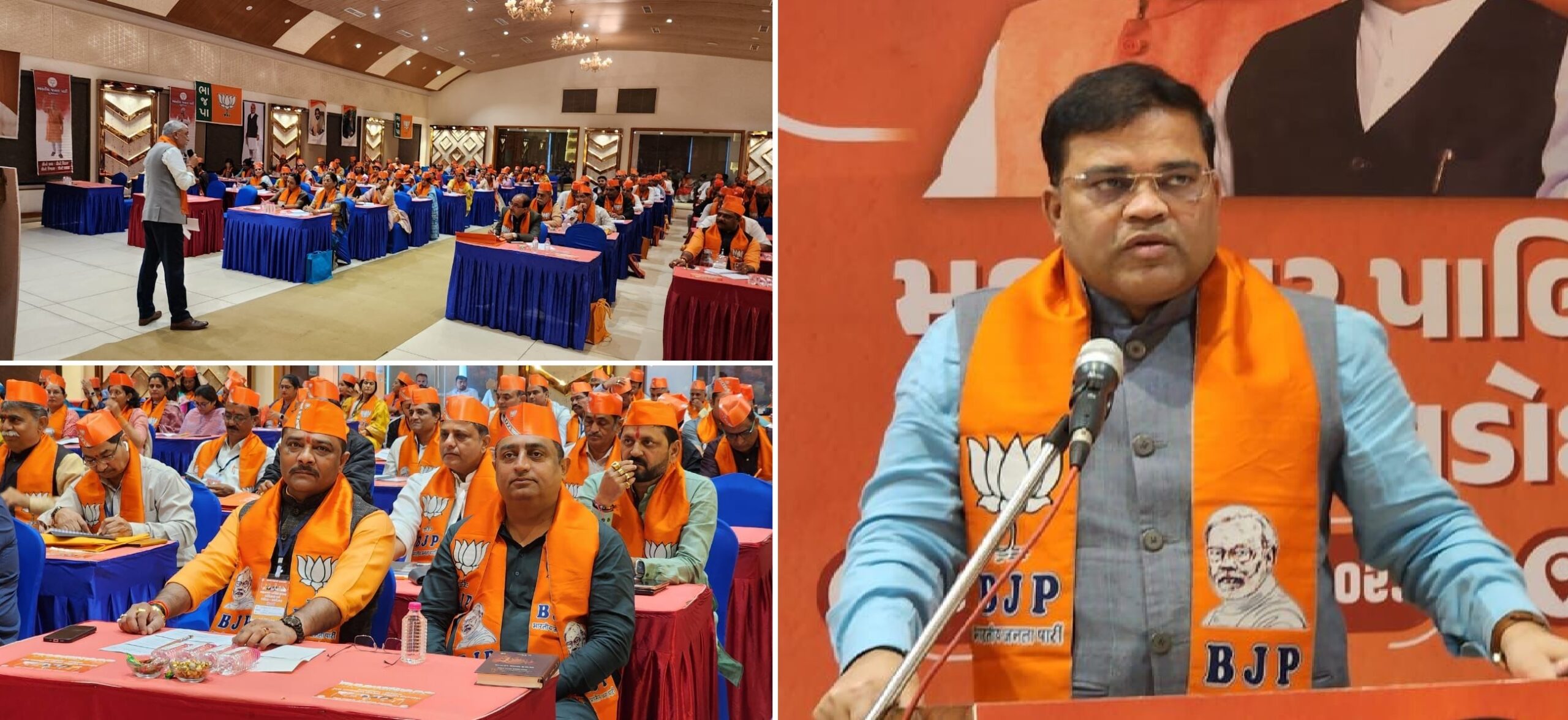 ભારતીય જનતા પાર્ટી- ગુજરાત પ્રદેશ દ્વારા ગાંધીનગર મહાનગરપાલિકા સદસ્ય પ્રશિક્ષણ વર્ગ ૨૦૨૩ અંતર્ગત માન. પ્રદેશ સંગઠન મહામંત્રીશ્રી રત્નાકરજીની વિશેષ ઉપસ્થિતમાં વડોદરા અને ગાંધીનગરનો પ્રશિક્ષણ વર્ગ ખેડા ખાતે યોજાયો. જેમાં મેયરશ્રી હિતેશભાઈ મકવાણા ઉપસ્થિત રહી કેન્દ્ર અને રાજ્ય સરકારની ગરીબ કલ્યાણકારી યોજના વિશે માહિતી તેમજ સંગઠનને વધુ મજબૂત બનાવવા અંગેનું માર્ગદર્શન મેળવ્યું હતું. આ વર્ગમાં ગાંધીનગર અને વડોદરાના પદાધિકારીશ્રીઓ, સંગઠનના હોદેદારશ્રીઓ તેમજ કાઉન્સિલરશ્રીઓ ઉપસ્થિત રહ્યા હતા.