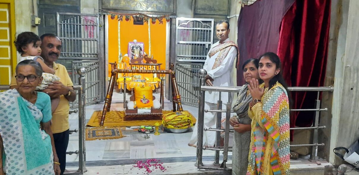 પરદેશ સાથે પરદેશીયા ભુલ ના જાના એ હેતુસર વડોદરામાં સ્થાયી થયેલા સમસ્ત વૈષ્ણવ સમાજ પૂર્વ ઝોનના મંત્રી સેવા ના ભેખખારી રાજેન્દ્રભાઈ જે.શાહ માદરે વતન જઈને પ્રભુના સુખાથૅ પ્રભુને વિવિધ ઋતુમાં ધરવામાં આવતી પીછોઈ, વાઘા ,અને વસ્ત્રો મૂલ્યવાન કિંમતના તેરા તુજકો અર્પણ એમ પ્રભુને પધરાવીને પોતાની દીકરીઓ માતા પત્ની સહિત સમગ્ર પરિવાર જોડાઈને કેનેડાથી આવેલ દીકરી શ્રેયા શાહ પ્રભુને ગમે તેવા પ્રિય લાગે તેવા ભજન કીર્તન વધાઈ ગાન કરીને કીર્તનની ભારે રમઝટ બોલાવી હતી. હવેલીના મુખ્યાજી ચેતનભાઇ દ્વારા આરતી ઉતારીને શ્રીજી ના અલૌકિક દર્શન કરીને અનેરો લહાવો પરિવાર દ્વારા લેવામાં આવ્યો અને મંદિરમાં જ પ્રસાદી ગ્રહણ કરીને વિખૂટા પડ્યા એમ જે દેશ યા પરદેશ પણ વતનને કેમ વિસરાય એવું અનોખું ઉદાહરણ રાજેન્દ્રશાહ પરિવાર દ્વારા માદરે વતન જઈને જોવા મળ્યું. રાજેન્દ્ર જે.શાહ પરિવારને તૃતીય પીઠાધીશ્રવર કાંકરોલી નરેશ પૂજ્ય શ્રી ડો વાગીશકુમારજી મહારાજ પ્રભુ માટેની સેવાકીય પ્રવૃત્તિને ધ્યાનમાં લઈને પરિવારને શુભમ ભવતુ કલ્યાણસ્તુ એમ શુભ આશીર્વાદ પ્રદાન આપ્યા હતા.