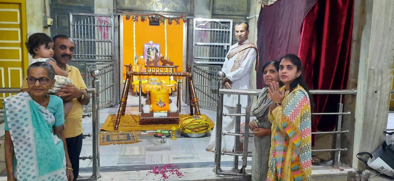 પરદેશ સાથે પરદેશીયા ભુલ ના જાના એ હેતુસર વડોદરામાં સ્થાયી થયેલા સમસ્ત વૈષ્ણવ સમાજ પૂર્વ ઝોનના મંત્રી સેવા ના ભેખખારી રાજેન્દ્રભાઈ જે.શાહ માદરે વતન જઈને પ્રભુના સુખાથૅ પ્રભુને વિવિધ ઋતુમાં ધરવામાં આવતી પીછોઈ, વાઘા ,અને વસ્ત્રો મૂલ્યવાન કિંમતના તેરા તુજકો અર્પણ એમ પ્રભુને પધરાવીને પોતાની દીકરીઓ માતા પત્ની સહિત સમગ્ર પરિવાર જોડાઈને કેનેડાથી આવેલ દીકરી શ્રેયા શાહ પ્રભુને ગમે તેવા પ્રિય લાગે તેવા ભજન કીર્તન વધાઈ ગાન કરીને કીર્તનની ભારે રમઝટ બોલાવી હતી. હવેલીના મુખ્યાજી ચેતનભાઇ દ્વારા આરતી ઉતારીને શ્રીજી ના અલૌકિક દર્શન કરીને અનેરો લહાવો પરિવાર દ્વારા લેવામાં આવ્યો અને મંદિરમાં જ પ્રસાદી ગ્રહણ કરીને વિખૂટા પડ્યા એમ જે દેશ યા પરદેશ પણ વતનને કેમ વિસરાય એવું અનોખું ઉદાહરણ રાજેન્દ્રશાહ પરિવાર દ્વારા માદરે વતન જઈને જોવા મળ્યું. રાજેન્દ્ર જે.શાહ પરિવારને તૃતીય પીઠાધીશ્રવર કાંકરોલી નરેશ પૂજ્ય શ્રી ડો વાગીશકુમારજી મહારાજ પ્રભુ માટેની સેવાકીય પ્રવૃત્તિને ધ્યાનમાં લઈને પરિવારને શુભમ ભવતુ કલ્યાણસ્તુ એમ શુભ આશીર્વાદ પ્રદાન આપ્યા હતા.