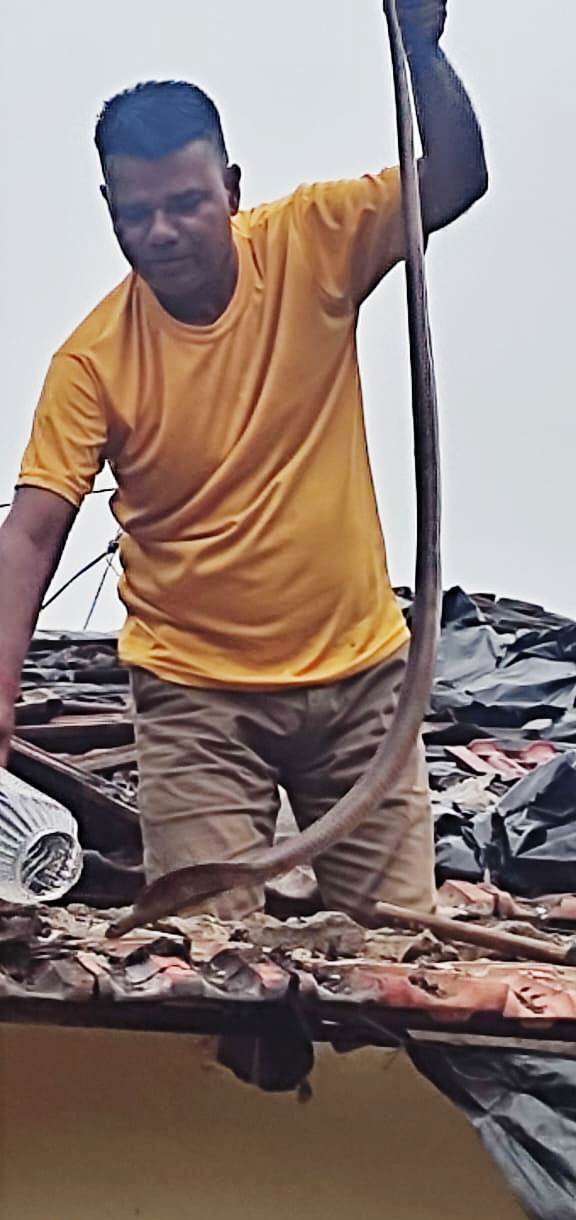 ગયા હતા. અને મકાન ઉપર ચડી નળીયામાં અંદર બેઠો ઝેરી કોબ્રા સાપને મહામુસીબતે કલાકની જહેમત બાદ પકડી લીધો હતો.