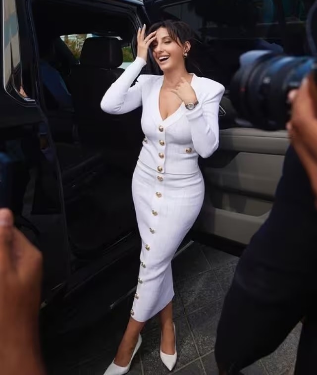 બોલીવૂડમાં પોતાના ડાંસ મૂવ્સ અને હૉટનેસ માટે હંમેશા ચર્ચામાં રહેતી એક્ટ્રેસ નોરા ફતેહી હાલમાં જ પોતાના ગ્લેમરસ લુકથી ફેન્સના દિલને ઘાયલ કરતી દેખાઈ હતી. આ લેટેસ્ટ ફોટોઝમાં નોરા ફતેહી ખૂબ જ સ્ટાઈલિશ અને ગોર્જિયસ લાગી રહી છે. આ તસવીરોમાં નોરા ફતેહી વ્હાઈટ કલરની ડીપ નેક બોડીકોન આઉટફીટમાં ખૂબ જ હોટ લાગી રહી છે, જેમાં બટન ડિટેલ્સ છે. આ ફુલ સ્લીવ બોડીહગિંગ ડ્રેસને નોરા ફતેહીએ ઈયરિંગ્સ અને વ્હાઈટ હાઈ હીલ્સ સાથે એક્સેસરાઈઝ કર્યું છે. સ્મોકી મેકઅપની સાથે પોતાના વાળને હાઈ પોનીટેલમાં બાંધી નોરા ફતેહી આ દરમ્યાન ખૂબ જ પ્રિટી લાગી રહી હતી. આ તસવીરોને શેર કરતા નોરા ફતેહીએ કેના કેપ્શનમાં લખ્યું કે, આ ફ્લેક્સિન સીઝન છે, યોર ગર્લ કુડ નેવા. આ અગાઉ નોરા ફતેહી પોતાના સ્પોર્ટી લુકથી ઈંસ્ટાગ્રામ પર આગ લગાવતી દેખાઈ હતી.