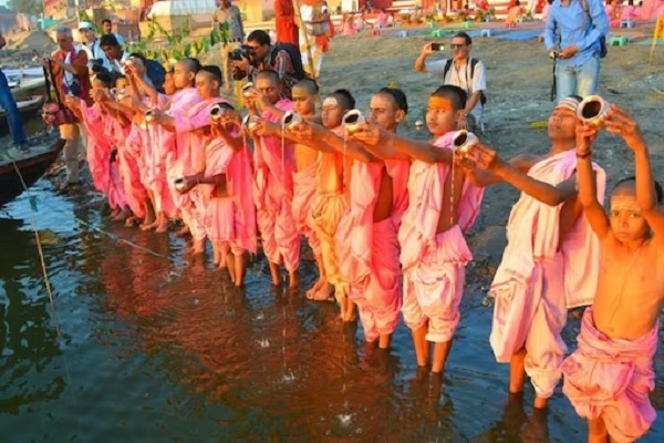 બાબા વિશ્વનાથના શહેર બનારસમાં હિન્દુ નવ વર્ષની શરુઆત ખાસ રીતે કરવામાં આવી હતી. કાશીના ઘાટ પર ભગવાન સૂર્યના પ્રથમ કિરણની સાથે બટુક અને સંતોએ જળ અર્પણ કર્યા અને બાદમાં સૂર્યનમસ્કાર સાથે નવા વર્ષનું સ્વાગત થયું. સૂર્ય નમસ્કાર કરતા પહેલા બટુકોએ બેન્ડની ધુન વચ્ચે ઝંડારોહણ પણ કર્યું. આ દરમ્યાન વૈદિક મંત્રોથી બનારસ ઘાટ ગૂંજી ઉઠ્યો. આ અવસર પર શંકરાચાર્ય સ્વામી અવિમુકતેશ્વરાનંદ સરસ્વતીએ સનાતની પંચાંગનું વિમોચન પણ કર્યું હતું. વારાણસીના શંકરાચાર્ય ઘાટ પર બટુક એક રંગના ખાસ પરિધાનમાં ભગવાન સૂર્યને નમસ્કાર કરી નવા વર્ષના સ્વાગત કરતા દેખાયા હતા. આ દરમિયાન ઘાટની સીડીઓ પર ફુલથી નવ સંવત્સર ૨૦૮૦ની તસ્વીર બનાવી હતી. જે લોકોના આકર્ષણનું કેન્દ્ર રહી હતી. હિન્દુ નવ વર્ષના આ ખાસ આયોજનમાં તમામ વર્ગના લોકો હાજર રહ્યા હતા. બનારસના શંકરાચાર્ય ઘાટ ઉપરાંત દશાશ્વમેઘ અને અસ્સી ઘાટ પર પણ વિવિધ આયોજન થયા હતા. ગંગા આરતીની સાથે હવન પૂજન પણ થયાં. યજ્ઞની આહુતીઓની વચ્ચે લોકોએ દેશની સમૃદ્ધિ અને સુખ શાંતિની કામના પણ કરી. આ દરમિયાન હર હર મહાદેવનો જયઘોષ સંભળાયો. શંકરાચાર્ય સ્વામી અવિમુક્તેશ્વરાનંદ સરસ્વતીએ જણાવ્યું કે, ચૈત્ર શુક્લ પ્રતિપદથી જ હિન્દુ નવ વર્ષની શરુઆત થા છે. આ દિવસે જ ભગવાન બ્રહ્માએ સૃષ્ટિની રચના કરી હતી. એટલા માટે આ દિવસ સનાતનિયો માટે ખૂબ ખાસ છે. નવ સંવત્સરથી વાસન્તિકની શરુઆત પણ થઈ જાય છે.