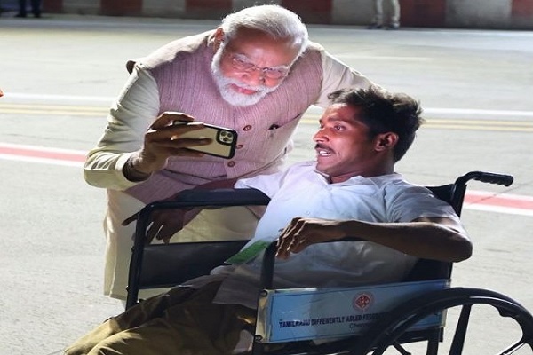 વડાપ્રધાન નરેન્દ્ર મોદીએ શનિવારે ચેન્નાઈની મુલાકાત લીધી હતી. આ દરમિયાન તેમણે હજારો કરોડ રૂપિયાના પ્રોજેક્ટનો શિલાન્યાસ કર્યો હતો. ચેન્નાઈથી કોઈમ્બતુર જતી નવી વંદે ભારત એક્સપ્રેસ ટ્રેનને પણ લીલી ઝંડી આપીને શરૂ કરી હતી. વડાપ્રધાને શનિવારે રાતે પોતાના સોશિયલ મીડિયાાં એક ખાસ સેલ્ફી પણ શેર કરી હતી. આ સેલ્ફી તેમના કોઈ કાર્યક્રમની ન હતી પરંતુ ભાજપના કાર્યકર સાથેની હતી. તેમણે પોતાના ટિ્વટર હેન્ડલ પરથી પોસ્ટ કરતા વડાપ્રધાન મોદીએ ખાસ સેલ્ફી ગણાવી હતી. પીએમ મોદીએ પોસ્ટ કરેલી સેલ્ફી દિવ્યાંગ બીજેપી કાર્યકર સાથેની હતી. પીએમ મોદીએ દિવ્યાંગ કાર્યકર વિશે કેટલીક વાતો પણ ટિ્વટ કરી હતી. પીએમ મોદીએ કાર્યકરનું નામ થિરુ એસ. મણિકંદન જણાવ્યું હતું. આ સાથે તેમણે એ પણ જણાવ્યું કે, મણિકંદન ઈરોડના બૂથ વર્કર છે. તે દુકાન પણ ચલાવે છે. પીએમ મોદીએ એમ પણ કહ્યું કે, મણિકંદન તેમની કમાણીનો મોટો ભાગ ભાજપને આપે છે. પીએમ મોદીએ ટિ્વટ કરીને જણાવ્યુ કે, “એક ખાસ સેલ્ફીપ હું ચેન્નાઈમાં થિરુ એસ. મણિકંદનને મળ્યો. તે ઈરોડથી જ્રમ્ત્નઁ૪્ટ્ઠદ્બૈઙ્મદ્ગટ્ઠઙ્ઘે ના બૂથ પ્રમુખ છે. તે વિકલાંગ છે અને પોતાની દુકાન ચલાવે છે અને સૌથી પ્રેરણાદાયી વાત એ છે કે – તે પોતાની રોજની કમાણીનો મોટો ભાગ ભાજપને આપે છે.” વડાપ્રધાન મોદીએ આગળ લખતા જણાવ્યુ કે, મને એવી પાર્ટીના કાર્યકર હોવાનો ખૂબ જ ગર્વ છે જ્યાં અમારી પાસે થિરુ એસ. મણિકંદન જેવા લોકો છે. તેમની જીવનયાત્રા અમારા પક્ષ અને અમારી વિચારધારા પ્રત્યેની તેમની પ્રતિબદ્ધતામાં પ્રેરણાદાયી અને એટલી જ પ્રેરણાદાયી છે. તેના ભવિષ્યના પ્રયાસો માટે મારી શુભેચ્છાઓ. તમને જણાવી દઈએ કે, પીએમ મોદીએ ચેન્નાઈમાં રોડ શો પણ કર્યો હતો. આ દરમિયાન તમામ ભાજપના કાર્યકરો અને તેમના સમર્થકોએ હાથ મિલાવીને વડાપ્રધાન મોદીનું સ્વાગત કર્યું હતું.