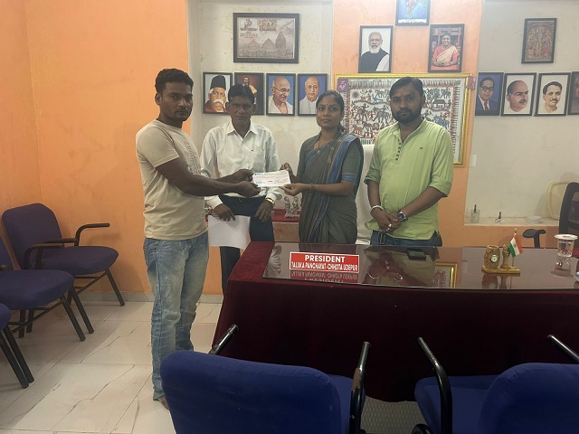છોટાઉદેપુર તાલુકાના અંબાલા ગામના ઈરફાનભાઇ ઇબ્રાહીમભાઇ મલેકનું ઘર ધરાશાય થયું હતું. જેને લઈને સરકાર દ્વારા 1,20,000ની સહાય આપવામાં આવી છે. જેનો ચેક છોટાઉદેપુર તાલુકા પંચાયત ખાતે તાલુકા પંચાયતના પ્રમુખ કલ્પનાબેન રાઠવાની ઉપસ્થિતિમાં આપવામાં આવ્યો હતો. આ પ્રસંગે તેઓની સાથે જિલ્લા ભાજપના યુવા નેતા સંગ્રામસિંહ જશુભાઈ રાઠવા ઉપસ્થિત રહ્યા હતા.