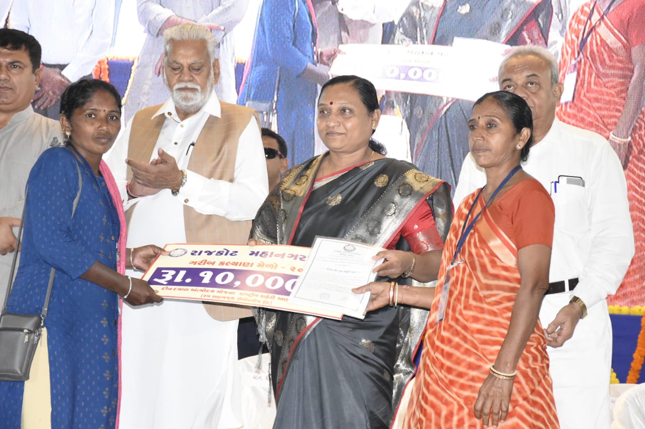 જનજનની સુખાકારી અને પ્રગતિની નેમ સાથે વડાપ્રધાનશ્રી નરેન્દ્રભાઈ મોદી અને મુખ્યમંત્રી શ્રી ભૂપેન્દ્રભાઈ પટેલના માર્ગદર્શન હેઠળ રાજકોટના અટલ બિહારી વાજપેયી ઓડિટોરિયમ ખાતે મેયરશ્રી નયનાબેન પેઢડીયાના અધ્યક્ષસ્થાને અને લોકસભાના સાંસદ શ્રી પુરૂષોત્તમ રૂપાલાની વિશેષ ઉપસ્થિતિમાં રાજકોટ મહાનગરપાલિકા દ્વારા શહેર કક્ષાનો “ગરીબ કલ્યાણ મેળો-૨૦૨૪” યોજાયો હતો. આ મેળામાં વિવિધ યોજનાના ૧,૬૨૨ લાભાર્થીઓને રૂ. ૨ કરોડ ૫૭ લાખની સહાય આપવામાં આવી હતી. તેમજ અત્યાર સુધી કુલ ૪૨,૨૪૬ લાભાર્થીઓને રૂ. ૮૮.૫ કરોડની સહાય-કીટ-લાભનુ વિતરણ કરાયું હતું.