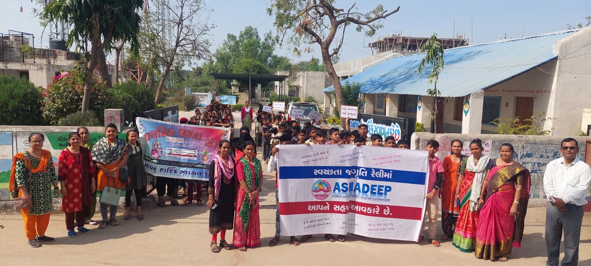 અને બેનરો, પોસ્ટરો સહિત સુત્રોચ્ચાર સાથે ગામના દરેક વિસ્તારમાં રેલી સ્વરુપે ફરીને ગામના લોકોને સ્વચ્છતા બાબતે જાગૃત કરવાનો નેક પ્રયાસ કર્યો હતો. નાના ભૂલકાંઓને પોસ્ટરો, સુત્રોચ્ચાર સાથે ગામની શેરીઓમાં ફરતા જોઇને ગામ લોકો પ્રભાવિત થયા હતા. પ્રસ્તુત રેલીને સફળ બનાવવામાં શાળાના આચાર્ય, શિક્ષકો તથા આશાદીપના સ્ટાફને સરાહનીય પ્રયત્નો કર્યા હતા.