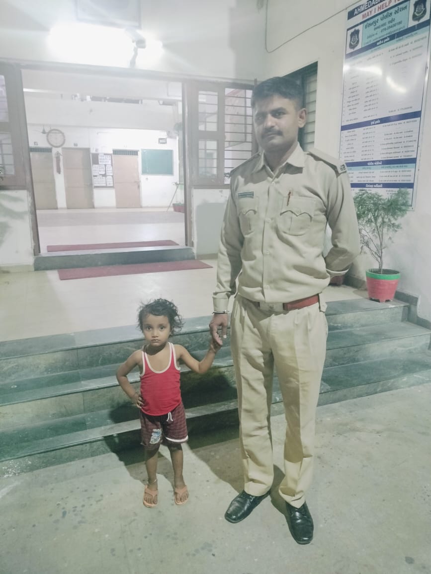 ફરજનો સમય પૂરો થયા બાદ રસ્તા પર ખોવાઈ ગયેલી ત્રણ વર્ષની બાળકીની વહારે આવી પરિવારે સાથે મિલન કરાવ્યું