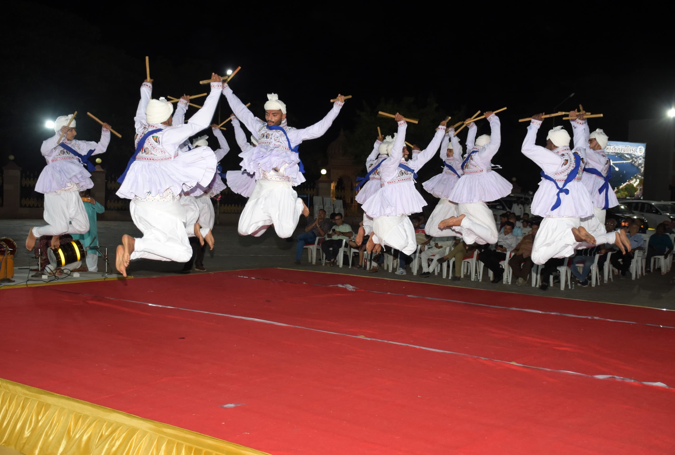 કાર્યક્રમમાં પ્રધાનમંત્રીશ્રી નરેન્દ્રભાઈ મોદીએ લખેલા ‘આવતી કળાય’ ગરબા પર રાસ મંડળીના ખેલૈયાઓએ મનમોહક રાસ રજૂ કર્યો હતો. જ્યારે આભમાં ઉગેલ ચાંદલો ગીત પર ખેલાયેલ ઢાલ-તલવાર રાસે સૌને અચંબિત કર્યા હતા. તો ભર્યા સરોવર બોલ પર રજૂ થયેલ મણિયારા રાસની પણ એટલી જ ઉત્કૃષ્ટ રજૂઆત થઈ હતી. સાથે સાથે કલાકારોએ વિકાસ ગીત તથા વિવિધ ગરબા રજૂ કરી સમગ્ર માહોલ દેશભક્તિમય બનાવ્યો હતો.