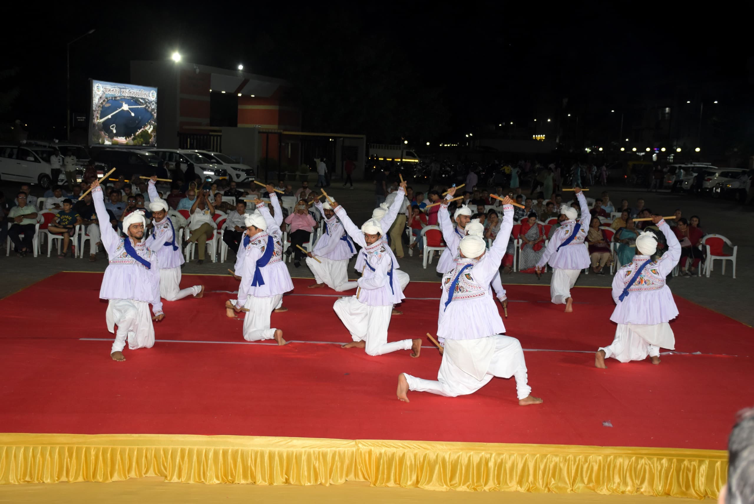 કાર્યક્રમમાં મેયર શ્રી વિનોદભાઈ ખીમસૂર્યા, ધારાસભ્ય શ્રી રિવાબા જાડેજા, ડેપ્યુટી મેયર શ્રી ક્રિષ્નાબેન સોઢા, સ્ટેન્ડિંગ કમિટી ચેરમેન શ્રી નિલેશભાઈ કગથરા, જિલ્લા કલેક્ટર શ્રી ભાવિન પંડ્યા, મ્યુનિસિપલ કમિશનર શ્રી ડી.એન.મોદી, શાસક પક્ષના નેતા શ્રી આશીષભાઈ જોષી, દંડક શ્રી કેતનભાઈ નાખવા, નગર શિક્ષણ સમિતિના ચેરમેન શ્રી પરષોત્તમભાઈ કકનાણી, નાયબ મ્યુનિસિપલ કમિશનર શ્રી ડી.એ.ઝાલા, શ્રી ભાવેશભાઈ જાની, નાયબ જિલ્લા વિકાસ અધિકારી શ્રી વિમલ ગઢવી, આગેવાન સર્વ શ્રી વિમલભાઈ કગથરા, શ્રી વિજયસિંહ જેઠવા સહિત સ્થાનિક કલાકારો તેમજ બહોળી સંખ્યામાં નગરજનો ઉપસ્થિત રહ્યા હતા.