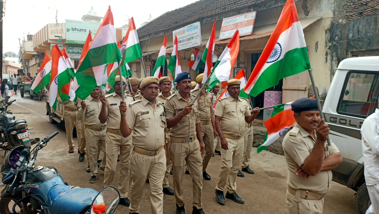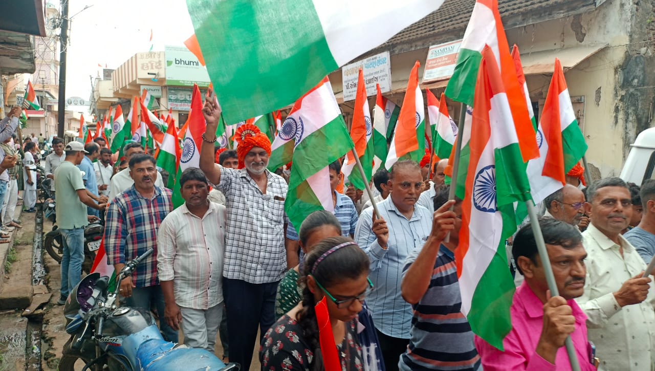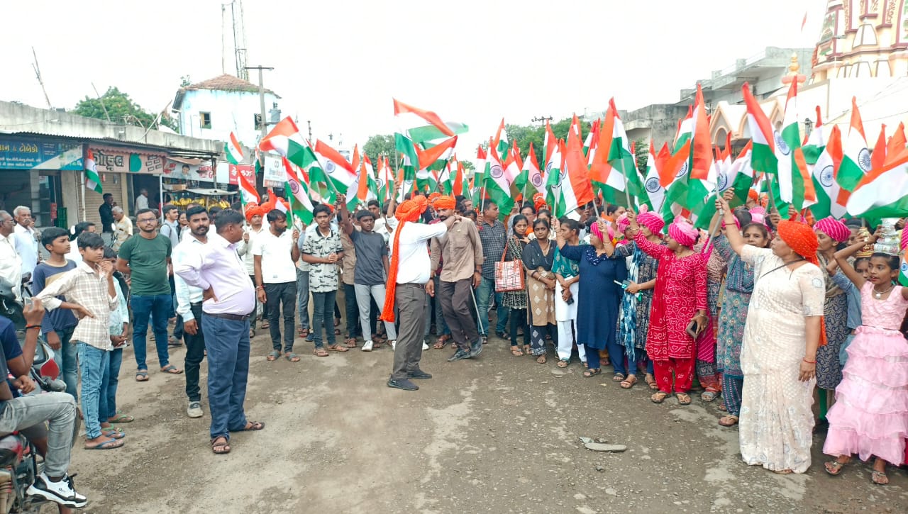 સૌપ્રથમ આવેલા મહેમાનોનું નાની દિકરીઓ દ્વારા કુમકુમ થી તિલક કરી અને વિધિવત સામૈયું કરવામાં આવેલ હતું ત્યારબાદ તિરંગા યાત્રા ગ્રામ પંચાયત કચેરીથી પ્રારંભ થઇ બસ સ્ટેન્ડ વિસ્તાર તેમજ તાલુકા પંચાયત પાસેથી નીકળી અને ઘનશ્યામ નગર સુધી યોજવામાં આવેલ હતી. ભારત માતાકી જય ના સુંદર નારા પણ લગાડવામાં આવેલા હતા.તો નાના બાળકોએ પોતાના હાથમાં રાષ્ટ્રધ્વજ સાથે ગાલ પર તિરંગા ના સુંદર ટેટુ પણ છપાવ્યા હતા.