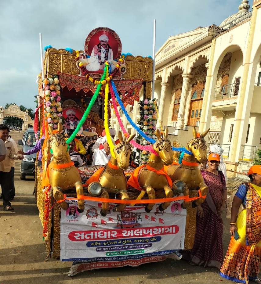 સાવરકુંડલા ખાતે આવેલ પૂજ્ય કાનજીબાપુની જગ્યા ખાતેથી પ્રાત; સ્મરણીય અને વંદનીય સાધુ સંતો તથા સમાજના આગેવાનો, કથાકારો અને રાષ્ટ્રીય સ્વયં સેવક સંઘના સ્વયંસેવકો, વિવિધ હિન્દુ સમાજના સંગઠનો દ્વારા સાવરકુંડલાથી પ્રસ્થાન થઈને નેસડી, ઈગોરાળા, કમી, કેરાળા, ચલાલા, મીઠાપુર, ડુંગરી, ઝર, મોરઝર, છતડીયા, ધારી, પ્રેમપરા, માલસીકા, વેકરીયા, લાલપુર, જેતલવડ, ખીસરી, કાલસારી, વિસાવદર, જીવાપર થઈને સતાધાર બપોરના ચાર કલાકે અલખયાત્રા સતાધાર પહોંચી હતી રસ્તામાં આવતા તમામ ગામોના ગ્રામજનો વિવિધ ધર્મના ધાર્મિક સ્થાનો દ્વારા અલખયાત્રાનું ફૂલ, ચોખા, અબીલ ગુલાલથી સ્વાગત કરવામાં આવ્યું હતું તથા અલખયાત્રાના રથમા રહેલ આપાગીગા, કાનજીબાપુ, શામજીબાપુ વગેરે સંતોની પ્રતિમાને પુષ્પહાર અને આરતી ઉતારવામાં આવતી હતી તેમજ સતાધારના પટાંગણમાં દિવ્ય ધર્મસભા યોજાઈ હતી