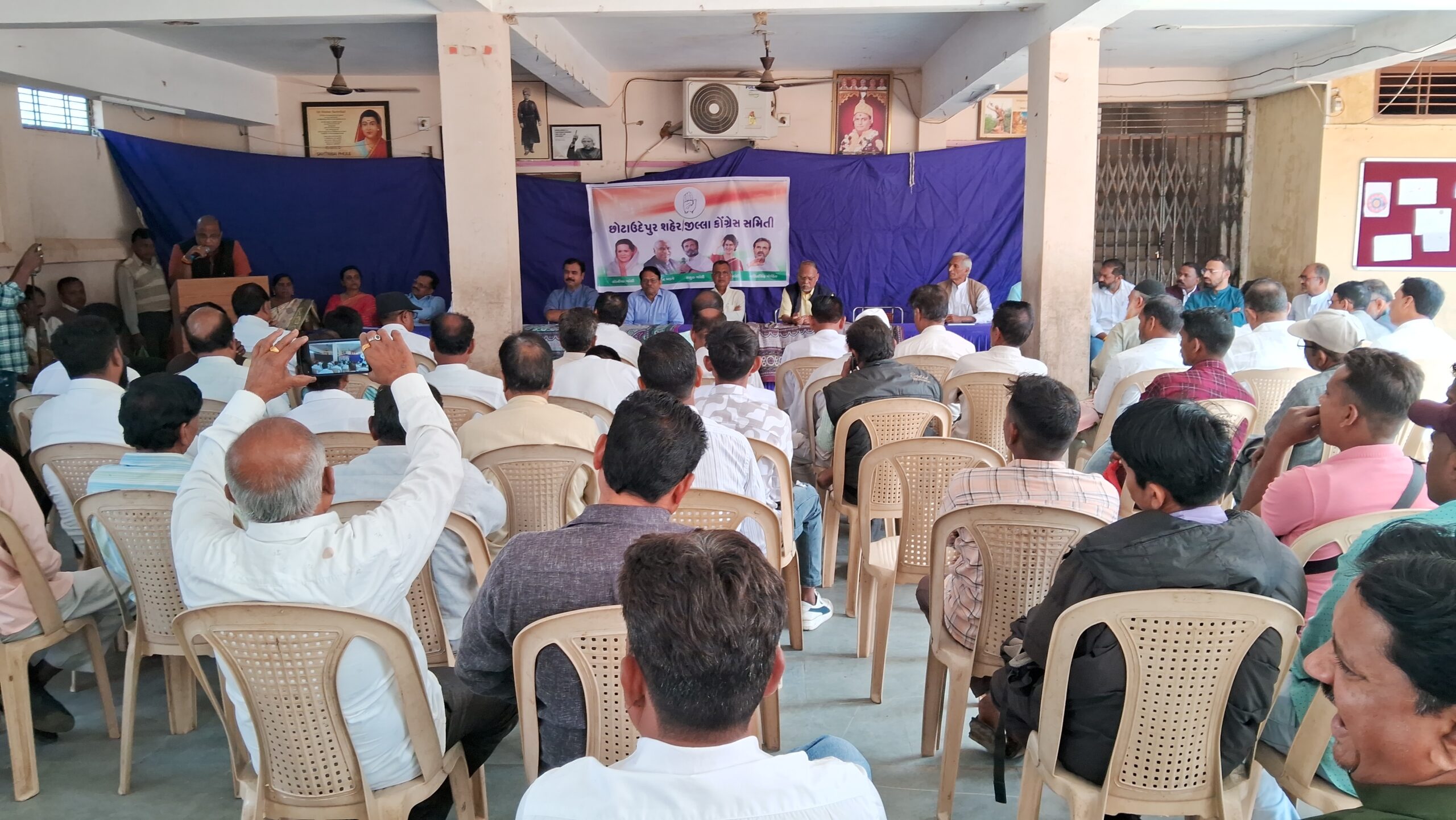 આગામી લોકસભાની ચૂંટણીને લઈને છોટાઉદેપુર ની નારાયણ સ્કૂલ ખાતે કોંગ્રેસ પાર્ટીની મીટીંગ યોજાઇ હતી. આ પ્રસંગે જનરલ સેક્રેટરી ઓલ ઇન્ડિયા કોંગ્રેસ સમિતિ તેમજ ST,SC,OBC,MAINORITY ના નેશનલ કોર્ડીનેટર કે.રાજુ ખાસ ઉપસ્થિત રહ્યા હતા. તેઓની સાથે ઉપસ્થિત લીડરશિપ ડેવલપમેન્ટ મિશન ચેરમેન ગુજરાત પ્રદેશ,અને પૂર્વ. ધારાસભ્ય નૌશાદ સોલંકી,વઝીર પઠાણ ચેરમેન માઇનોરિટી ડિપાર્ટમેન્ટ, પૂર્વ વિરોધ પક્ષના નેતા સુખરામભાઈ રાઠવા, કોંગ્રેસના યુવા નેતા સંગ્રામસિંહ રાઠવા, હાથ સે હાથ જોડોના કો કન્વીનર પ્રોફેસર અર્જુન રાઠવા, જિલ્લા કોંગ્રેસ સમિતિના પ્રમુખ ધીરેનભાઈ તિવારી સહીત કોંગ્રેસ સમિતિના કાર્યકર્તાઓ હોદ્દેદારો અને આગેવાનો ઉપસ્થિત રહ્યા હતા.આ કાર્યક્રમમાં લોકસભાની ચૂંટણીને લઈને કોંગ્રેસ પાર્ટીની કેવી રીતે મજબૂત કરી શકાય તે અંગે ચર્ચા કરવામાં આવી હતી. સાથે આ મીટીંગ પ્રસંગે કોંગ્રેસ પાર્ટી દ્વારા નવા મિશનની શરૂઆત કરવામાં આવી છે. લીડરશીપ ડેવલપમેન્ટ મિશન આ મિશન અંગે પણ ચર્ચા પણ કરવામાં આવી હતી.
