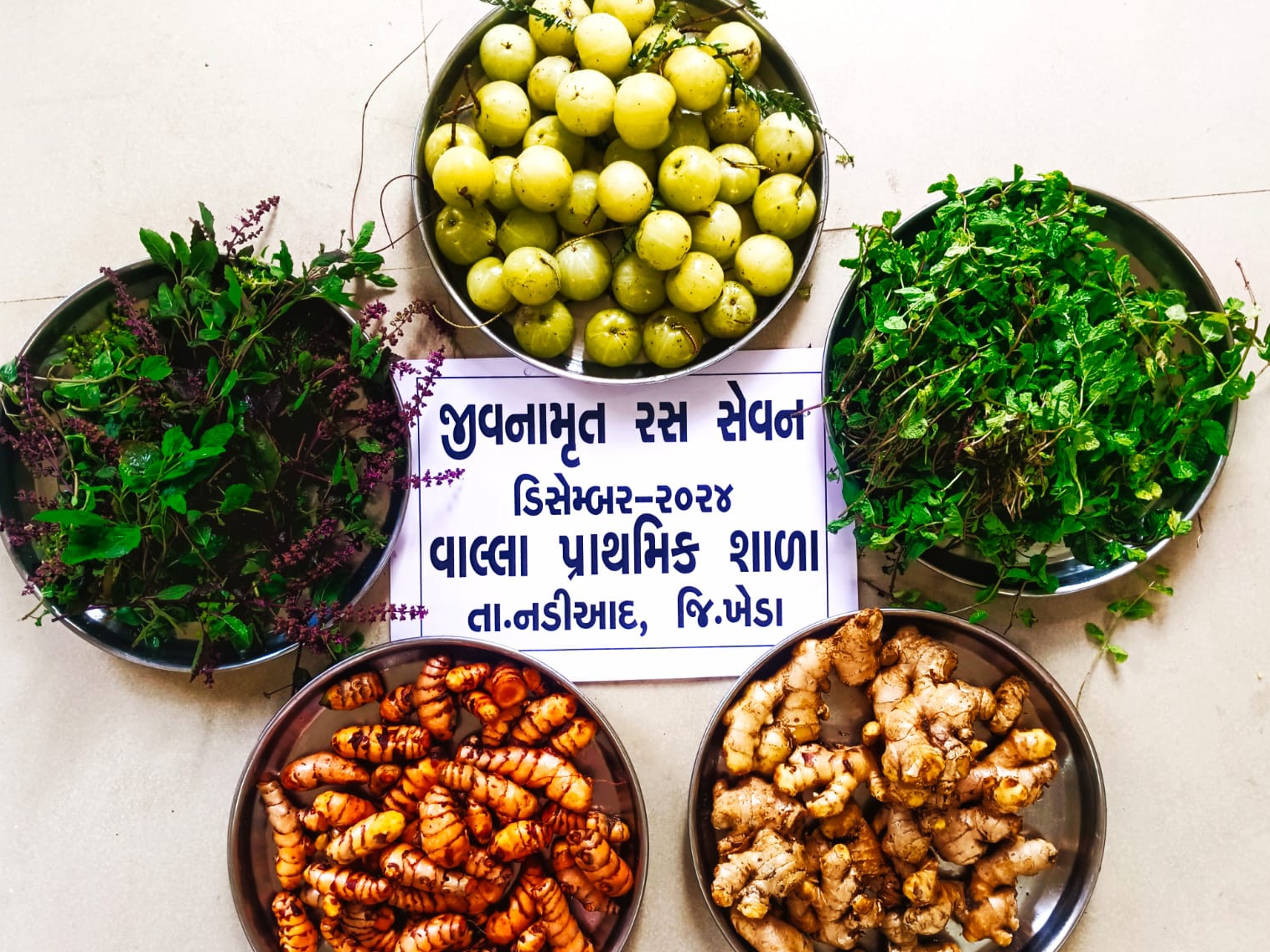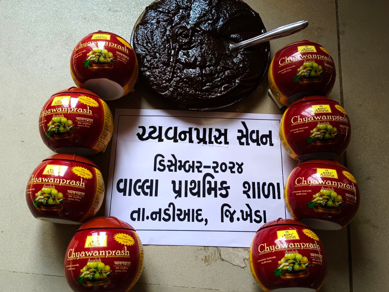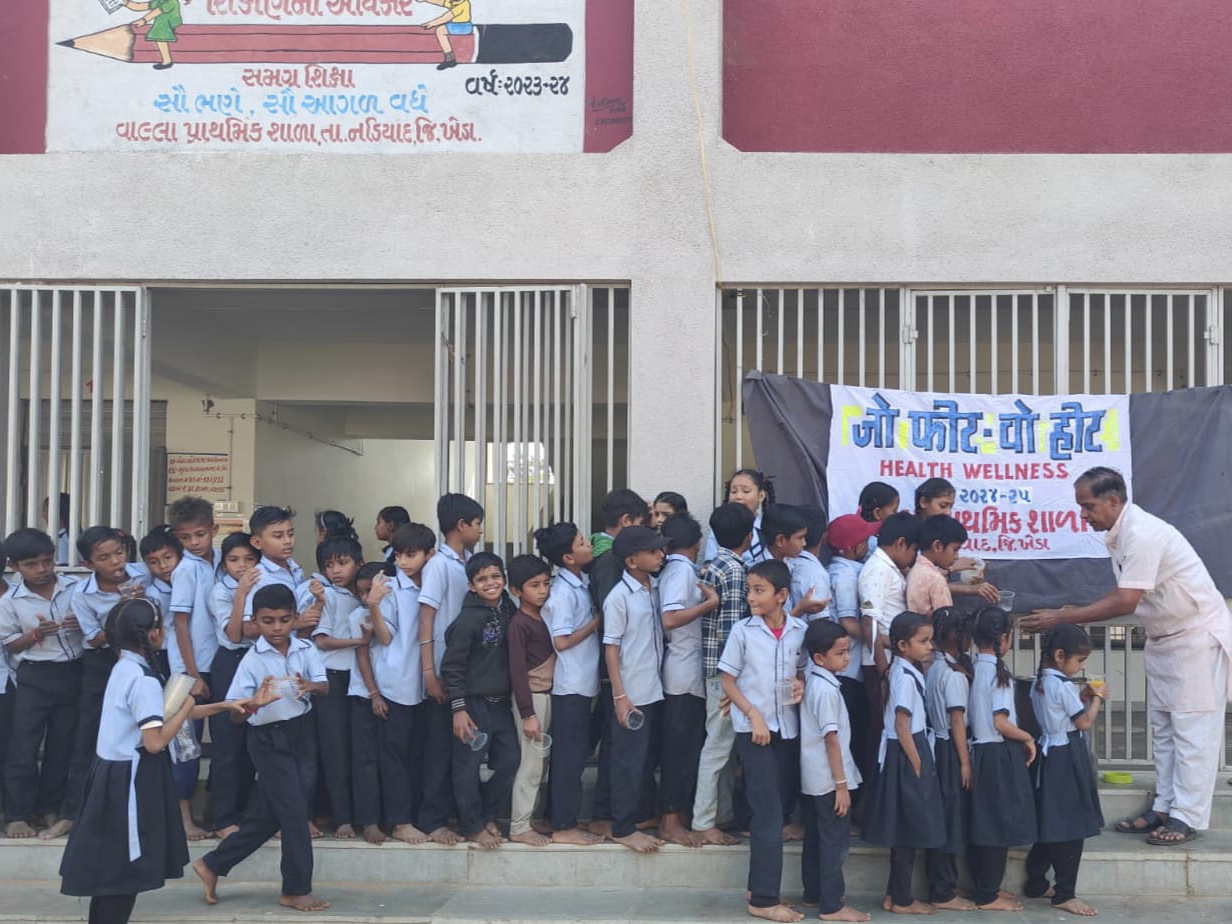 નિરોગી બાળ-નિરોગી સમાજનું સૂત્ર સાચા અર્થમાં સાર્થક કરવા નડિયાદના વાલ્લા પ્રાથમિક શાળાએ આગેકૂચ કરી છે. વિદ્યાર્થીઓની આરોગ્ય સુખાકારીનો નવતર પ્રયોગ આ શાળા દ્વારા કરવામાં આવ્યું છે. ‘જો ફીટ – વો હીટ’ અંતગર્ત શાળાના તમામ 183 વિદ્યાર્થીઓને 8 દિવસ સુધી જીવનામૃત રસનુ સેવન કરવામાં આવ્યું છે. જીવનામૃત રસ, પંચામૃત રસ, તુલસી રસ ,આથેલાં આમળાં અને ચ્યવનપ્રાશનું સેવન કરાવાયું છે.