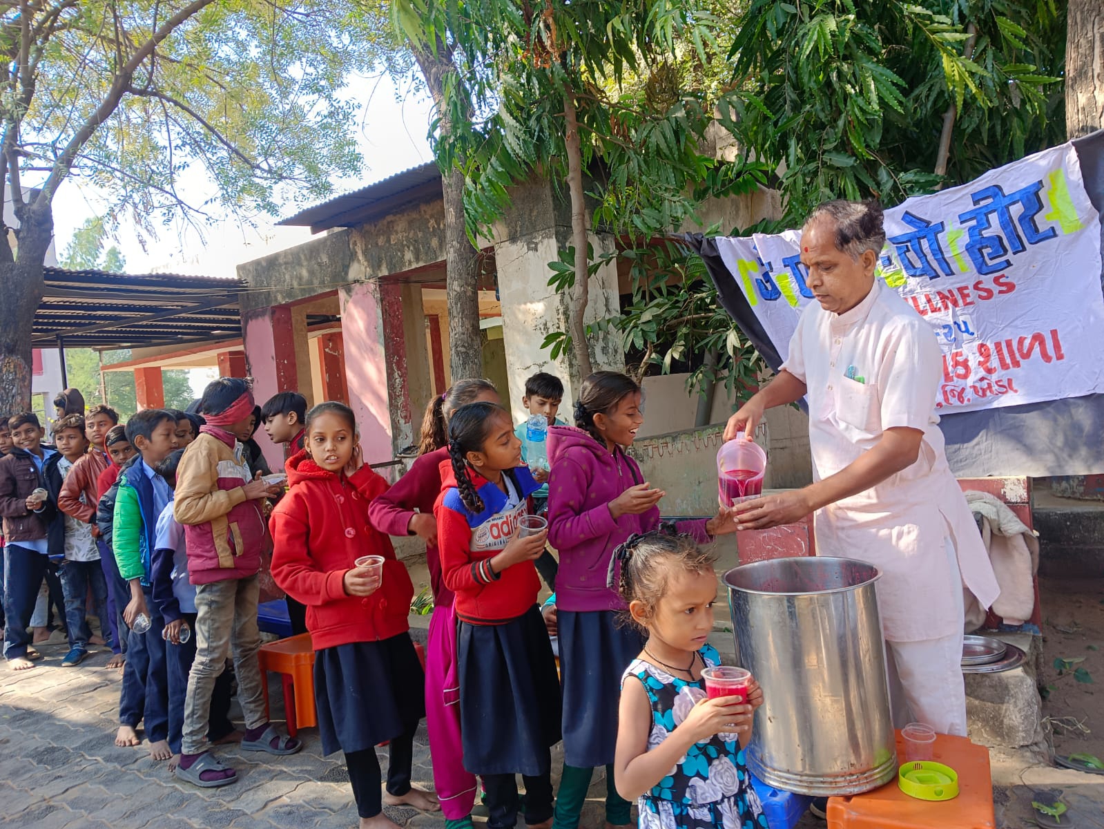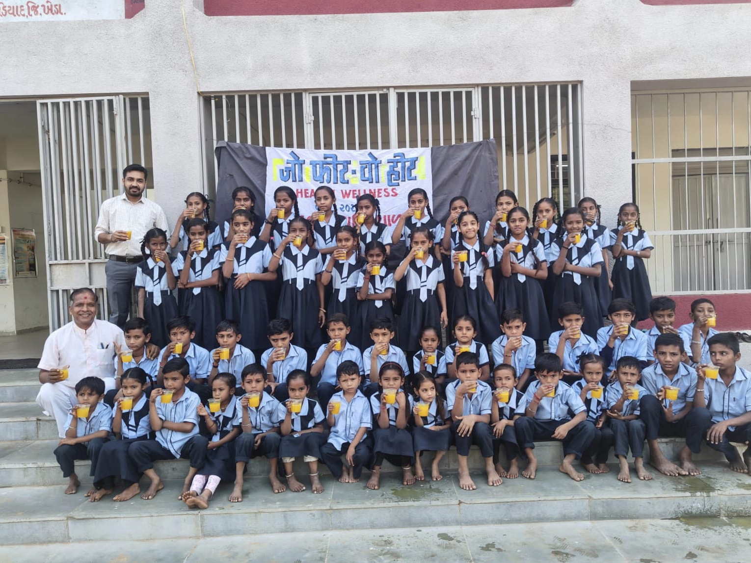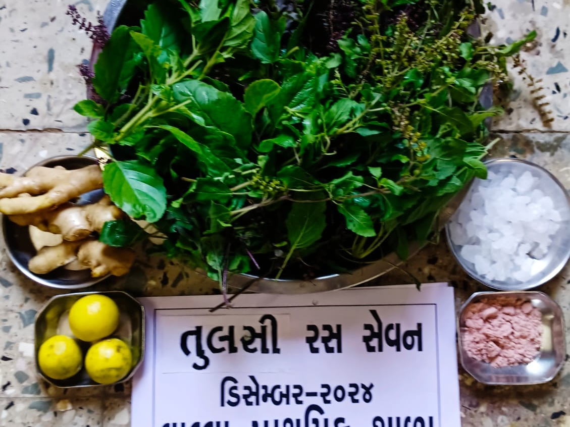 જેમાં જીવનામૃત રસમાં આમળાં,લીલી હળદર,તુલસી,ફુદિનો અને આદુ છે,પંચામૃત રસમાં ગાજર,બીટ, ટામેટાં,આદુ અને લીંબુ છે,તુલસી રસમાં તુલસી પાન,આદુ,સાકર, લીંબુ અને સંચળનો સમાવેશ થાય છે.બાળક જો શારીરિક અને માનસિક રીતે તંદુરસ્ત રહેશે,તો શાળામાં નિયમિત હાજર રહેશે અને તે નિયમિત હોવાથી અભ્યાસમાં પણ આગળ વધતો રહેશે. તન-મનની તંદુરસ્તી જીવનમાં પ્રગતિ અને સફળતા અપાવે છે.આવા ઉમદા વિચાર સાથે શાળામાં ‘જો ફીટ -વો હીટ’ નામે નવતર પ્રયોગ થયો. જેમાં હિતેશકુમાર બ્રહ્મભટ્ટે જાતે તૈયાર કરી આ આયુર્વેદિક રસનું વિદ્યાર્થીઓને સેવન કરાવ્યું, સાથે આથેલાં આમળાં અને ચ્યવનપ્રાશ પણ આપેલ છે.