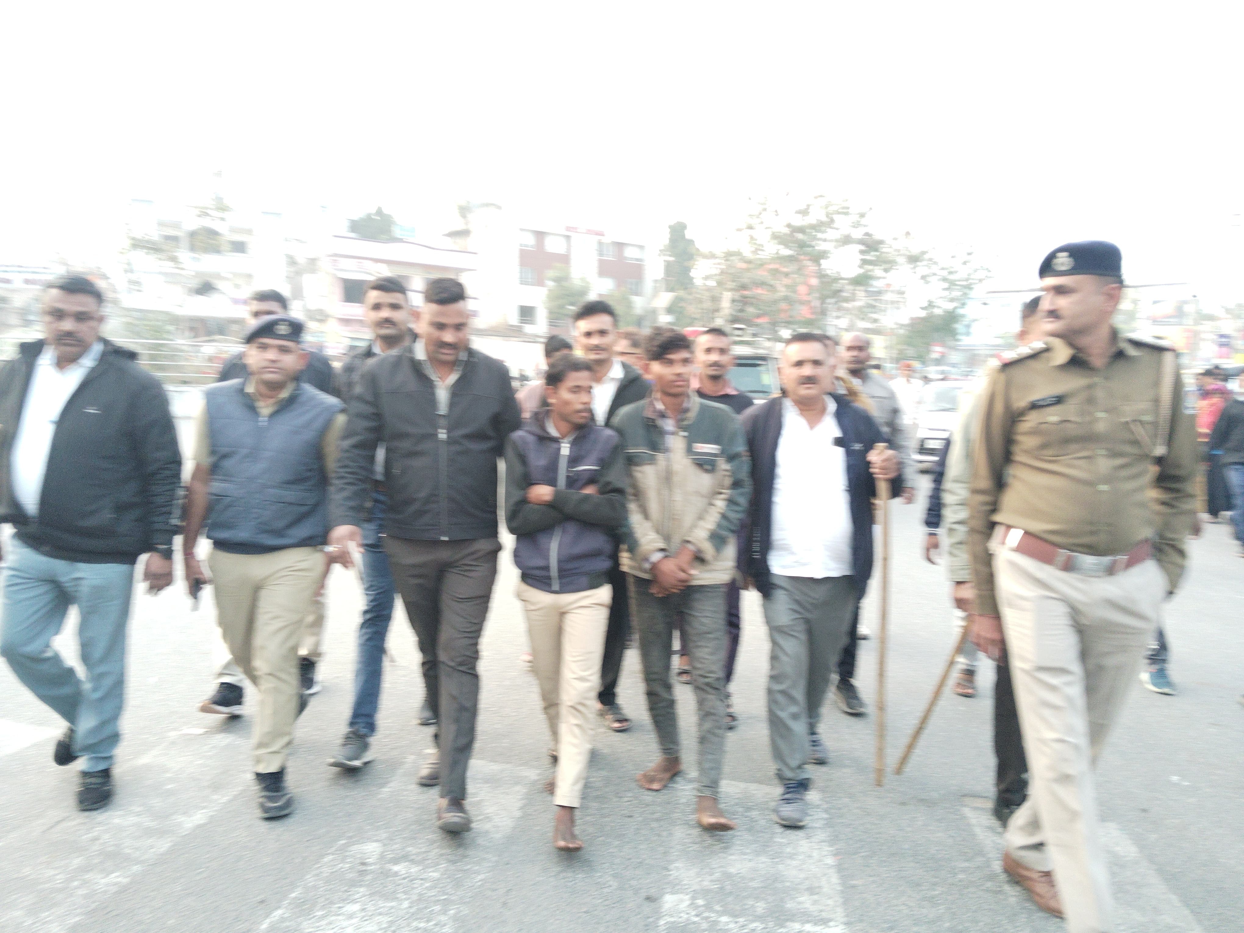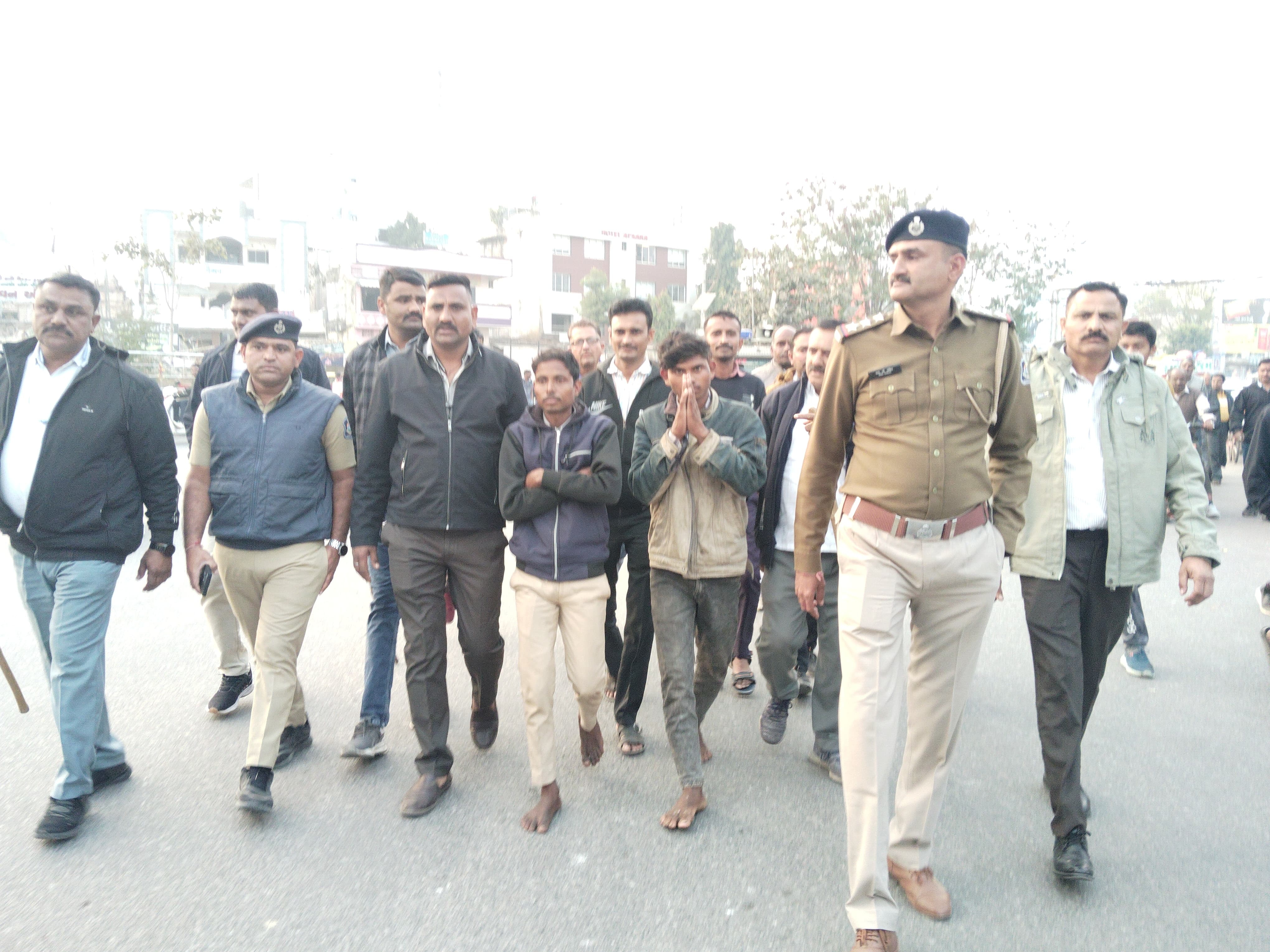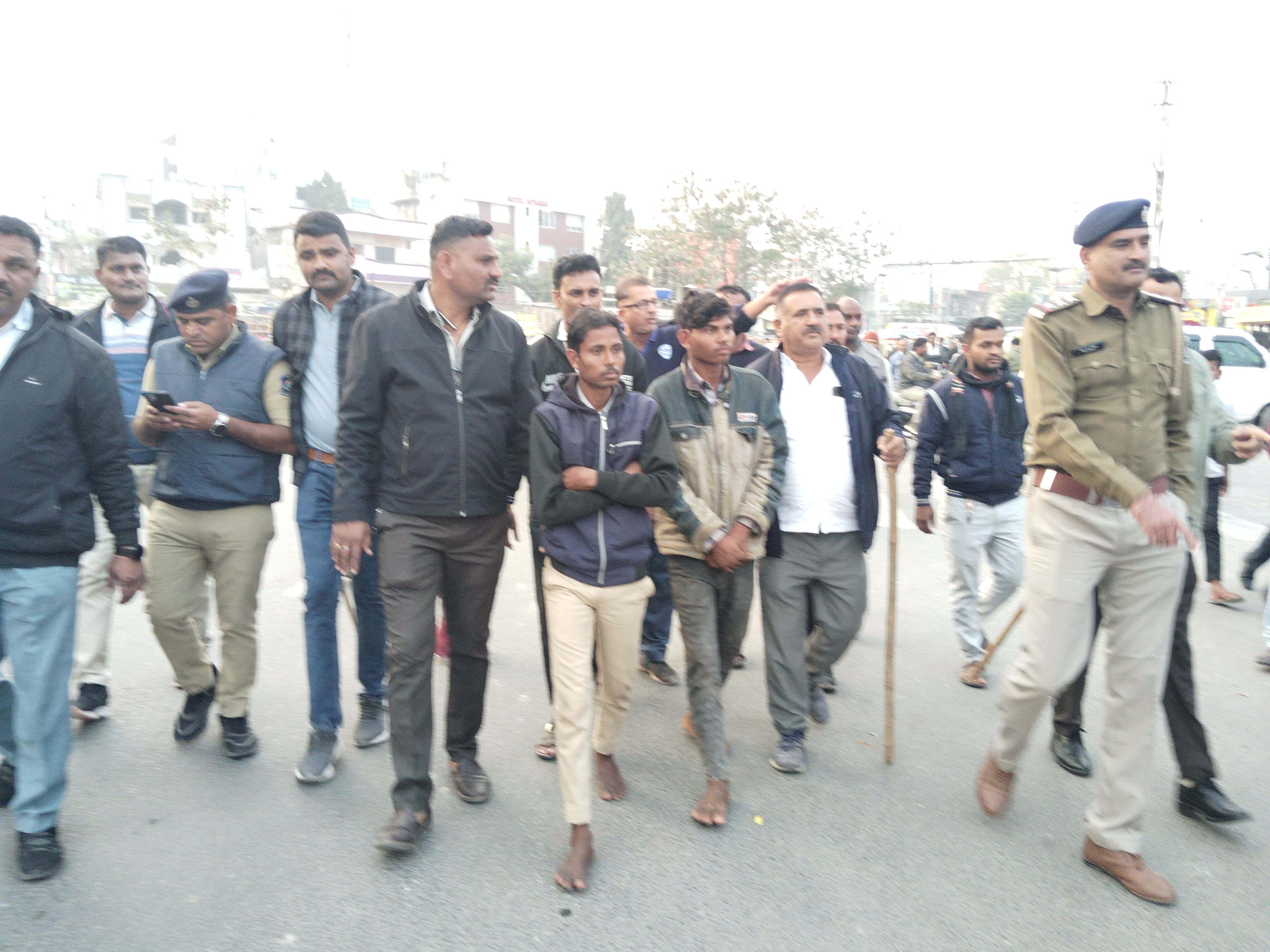 અંબાજી પોલીસે લૂંટના બે આરોપીઓ ને ઝડપી પડ્યા હતા. પકડાયેલા બે આરોપીઓને ઘટનાસ્થળે લઈ જઈને સમગ્ર ઘટનાનું રિકન્સ્ટ્રકશન કરવામાં આવ્યું હતું. અંબાજી પોલીસે તમામ આરોપીઓનું જાહેર રસ્તાઓ પર સરઘસ કાઢ્યું હતું.