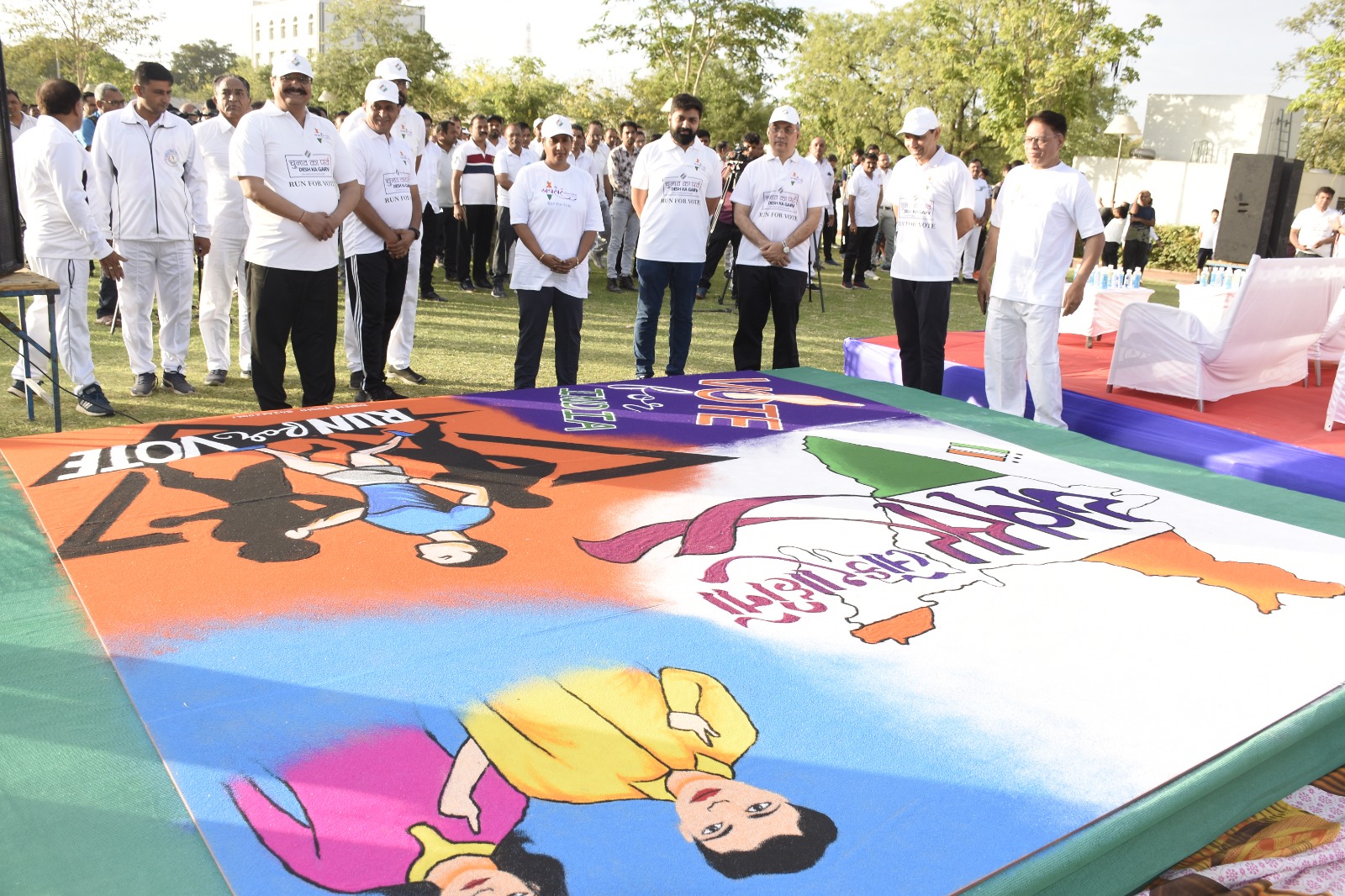 રન ફોર વોટ રેલીને રાજયના મુખ્ય નિર્વાચન અધિકારી શ્રીમતી પી. ભારતી અને અધિકારીઓએ લીલીઝંડી આપી પ્રસ્થાન કરાવતાની સાથે જ આ રેલીનો સ્વણિર્મ પાર્કની સરદાર પટેલની પ્રતિમાથી આરંભ થયો હતો. આ રેલી ઘ-૪ થઇ મહાત્મા મંદિર પહોંચી હતી. ત્યાં રેલીનું સમાપન થયું હતું.