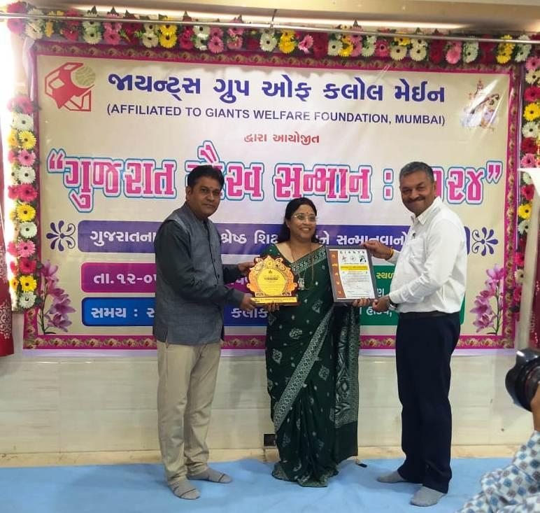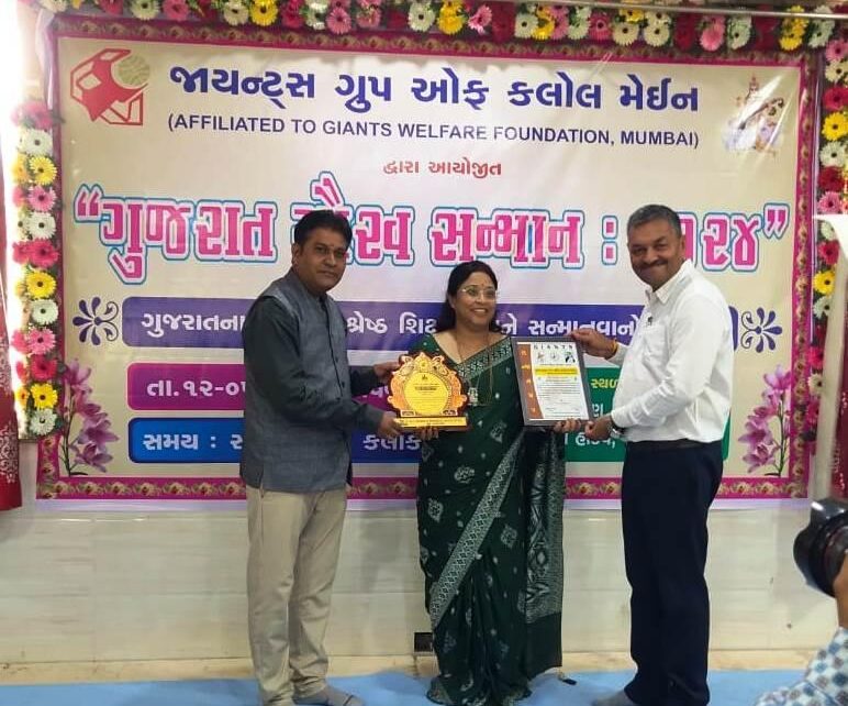 જાયન્ટ્સ ગ્રુપ ઓફ કલોલ મેઈન દ્વારા સ્વામીનારાયણ યુનિવર્સિટી કલોલ ખાતે યોજાયેલ ગુજરાત ગૌરવ સન્માન ૨૦૨૪ કાર્યકર્મ અંતર્ગત કઠલાલ તાલુકાના સિંઘાલીયા ની મુવાડી પ્રાથમિક શાળાના શિક્ષક ડિંડોર રેખાબેન કનુભાઈ જેઓનું ગુજરાત ગૌરવ એવોર્ડ તથા સન્માનપત્ર એનાયત કરી તેઓનું સન્માન કરવામાં આવ્યું હતું ગુજરાત માધ્યમિક શિક્ષણ બોર્ડના મદદનીશ સચિવ પુલકિતભાઈ જોશી જાણીતા કેળવણીકાર તખુભાઇ સાંડસુર તથા જાયન્ટસ કલોલ ભરતભાઈ પટેલના હસ્તે સન્માનીત કરવામાં આવ્યા હતા જેને લઈને શાળા પરીવાર, સ્ટાફ ગણ તથા એસ.એમ.સી.ના હોદ્દેદારો માં ભારે ખુશીનો માહોલ ઉભો થયો હતો.