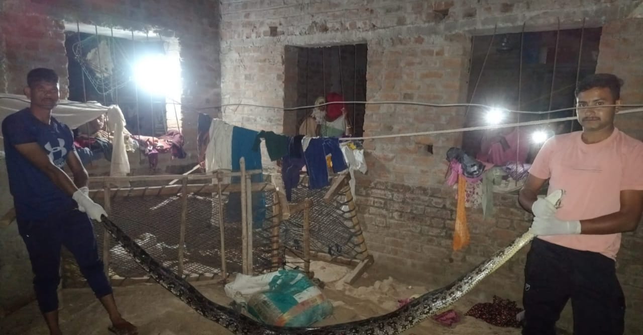 છોટાઉદેપુર તાલુકાના પાદરવાંટ ગામે ટેકરા ફળિયામાં રહેતા લાલુભાઈ ઇશ્વરભાઈ રાઠવાના ઘરમાં મોટો અજગર ઘરમાં ભરાયો હતો. તેવી જાણ ગામના જાગૃત નાગરિક દ્વારા વન વિભાગની ટીમને કરી હતી. જેને લઇને વન વિભાગ છોટાઉદેપુરના સ્ટાફ ફોરેસ્ટર વાય.જી.બારીયા , બીટગાર્ડ અંકિતભાઈ બારિયા અને વિક્રમભાઈ ચાલુ વરસાદમાં તેમના ઘરે પહોંચી 9 ફૂટ લાંબા અજગરનો રાત્રીના 12 કલાકે રેસ્ક્યું કરવામાં આવ્યું હતું.