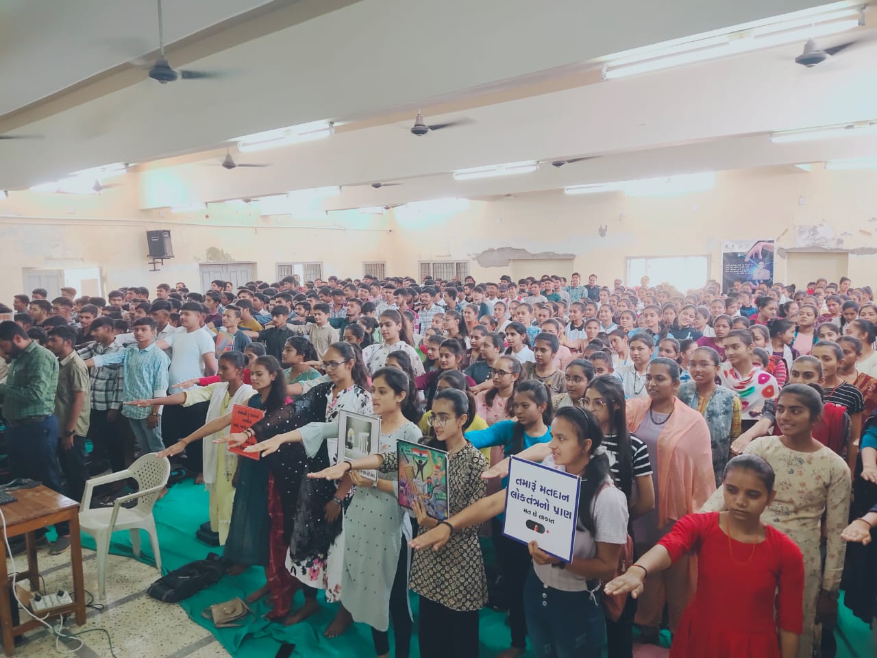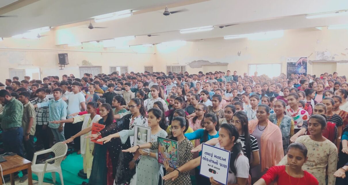 તેના પર વક્તવ્ય આપેલ.બીકોમ સેમેસ્ટર ૬ ની વિદ્યાર્થીની ખુમાણ ઉર્વશીએ લોકશાહીમાં મતદાનના મહત્વ વિશે વક્તવ્ય આપેલ. ત્યારબાદ પ્રોજેક્ટર પર ઇલેક્શન કમિશન ઓફ ઇન્ડિયા દ્વારા તૈયાર કરેલ વીડિયો ક્લિપ દ્વારા મતદાર જાગૃતિ અંગેનો સંદેશો આપવામાં આવેલ.
