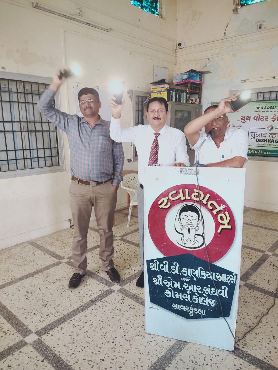 નૂતન કેળવણી મંડળ સાવરકુંડલા સંચાલિત શ્રી વી.ડી.કાણકિયા આર્ટસ અને એમ.આર.સંઘવી કોમર્સ કોલેજ તથા તાલુકા તથા જિલ્લા વહીવટી તંત્રના સંયુક્ત ઉપક્રમે આગામી લોકસભા ૨૦૨૪ની ચૂંટણીને અનુલક્ષીને મતદાર જાગૃતિ અભિયાનનું આયોજન કરવામાં આવેલ. કાર્યક્રમની શરૂઆત સમૂહ પ્રાર્થનાથી કરવામાં આવેલ. કોલેજના પ્રિ.ડો.એસ.સી રવિયાએ ‘મતદાનનું પર્વ- દેશનું ગર્વ’ સંદર્ભે પ્રાસંગિક ઉદબોધન કરેલ.વા.પ્રિ.રીંકુબેન ચૌધરી એ કાર્યક્રમમાં ઉપસ્થિત દીપાબેન કોટક (નાયબ જિલ્લા વિકાસ અધિકારીશ્રી), ધારાબેન ભાલારા (નાયબ કલેકટર ), બારૈયા સાહેબ (મામલતદાર ), પરમાર સાહેબ (તાલુકા વિકાસ અધિકારી શ્રી), બોરડ સાહેબ (ચીફ ઓફિસર ), ડાંગર સાહેબ (તાલુકા શિક્ષણ અધિકારી ) તથા જિલ્લા – તાલુકા વહીવટી તંત્રમાંથી પધારેલા તમામ મહાનુભાવોનું શાબ્દિક સ્વાગત કરેલ.તમામ મહેમાનોના વરદ હસ્તે દીપ પ્રાગટ્ય કરી કાર્યક્રમ ખુલ્લો મુકવામાં આવેલ. બીકોમ સેમેસ્ટર ૨ ની વિદ્યાર્થીની ધડુક અર્શિતા દ્વારા સાંસ્કૃતિક ગીતની રજૂઆત થયેલ તેમજ બીકોમ સેમેસ્ટર ૬ ની વિદ્યાર્થીની કવા આર્મી એ મતદાનનું મહત્વ અને યુવાનોએ તેમના મતદાનના અધિકાર વિશે કેમ જાગૃત હોવું જોઈએ?