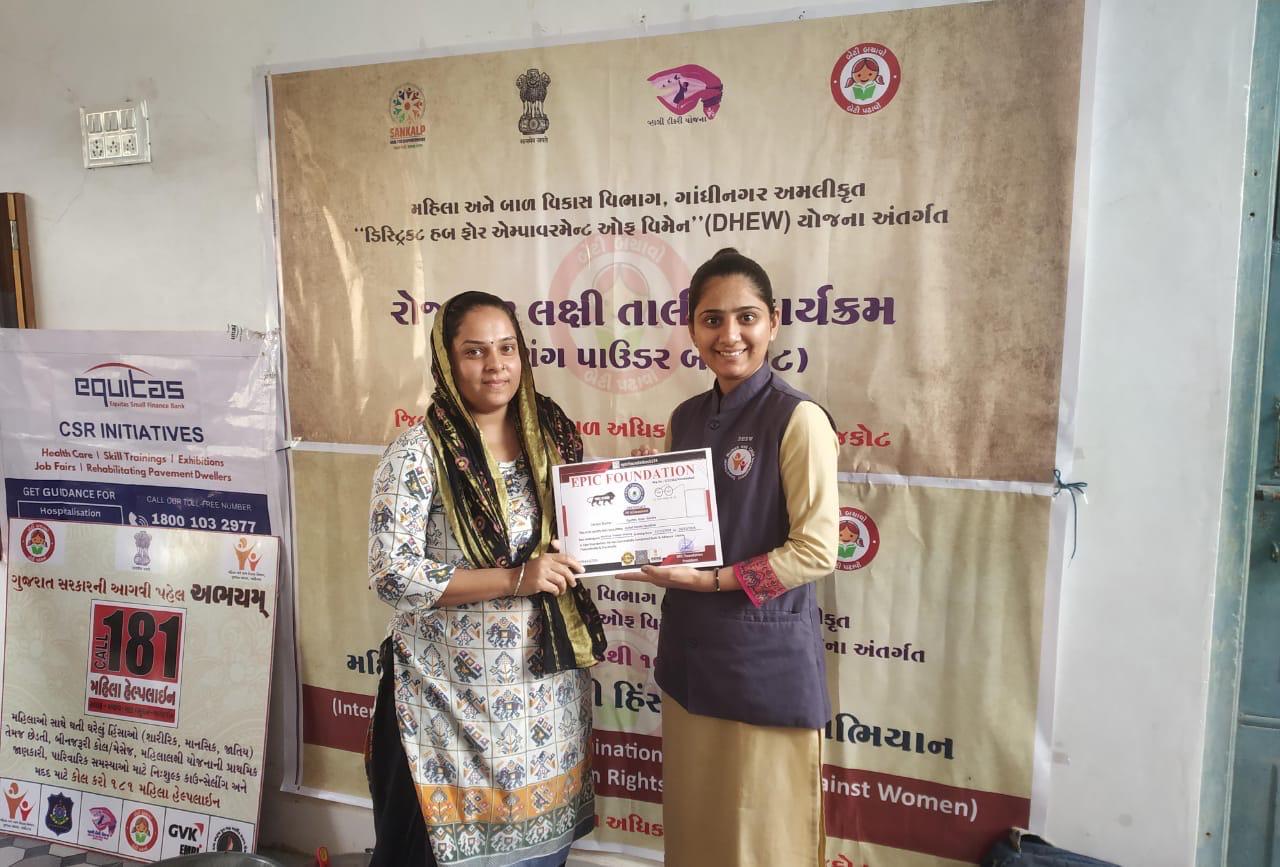 જે અન્વયે રાજકોટ જિલ્લા મહિલા અને બાળ કલ્યાણ અધિકારીશ્રી જનકસિંહ ગોહિલના માર્ગદર્શન હેઠળ “સંકલ્પ” હબ ફોર એમ્પાવરમેન્ટ ઓફ વિમેન સ્કીમ અંતર્ગત તા. ૨૬ નવેમ્બરના રોજ એપીક ફાઉન્ડેશન, અમદાવાદના સહયોગથી ગોંડલ તાલુકાના વાળધરી ગામ ખાતે મહિલા રોજગારલક્ષી એક દિવસીય તાલીમ યોજવામાં આવી હતી.