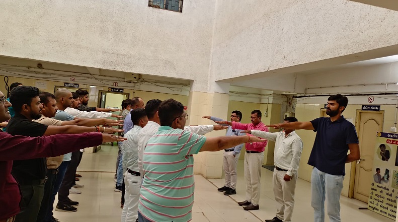 તે અંતર્ગત આજરોજ જિલ્લા ક્ષય કેન્દ્ર અને ઇન્ચાર્જ મુખ્ય જિલ્લા આરોગ્ય અધિકારી ડો ભરતસિંહ ચૌહાણની ઉપસ્થિતિમાં જિલ્લા ક્ષય કેન્દ્ર છોટાઉદેપુર તથા જિલ્લા તાલીમ કેન્દ્ર નાં તમામ અધિકારીઓ અને કર્મચારીઓ એ દેશનાં સમૃદ્ધ વારસાનુ ગૌરવ અને દેશના બંધારણીય મૂલ્યોનુ જતન કરવા , ધર્મ જાતિના તમામ બંધનો માંથી મુક્ત રહી બંધુતાની ભાવના સાથે એક ભારત શ્રેષ્ઠ ભારતના સૂત્રને સાકાર કરવા ભારતની એકતા અને અખંડિતતા માટે સદાય પ્રતિબદ્ધ રહીશ અને દેશના માનનીય વડાપ્રધાનએ જોયેલ વિકસિત ભારત નાં સ્વપ્ન ને સાકાર કરવા મન વચન અને કર્મથી તત્પર રહીશ અને “રાષ્ટ્ર પ્રથમ” ના મંત્ર ને જીવન મંત્ર બનાવી દેશના વિકાસ અને કલ્યાણ માટે તન મન અને ધનથી અવિરત પ્રયાસરત રહીશ ની “ભારત વિકાસ પ્રતિજ્ઞા” લીધી હતી.
