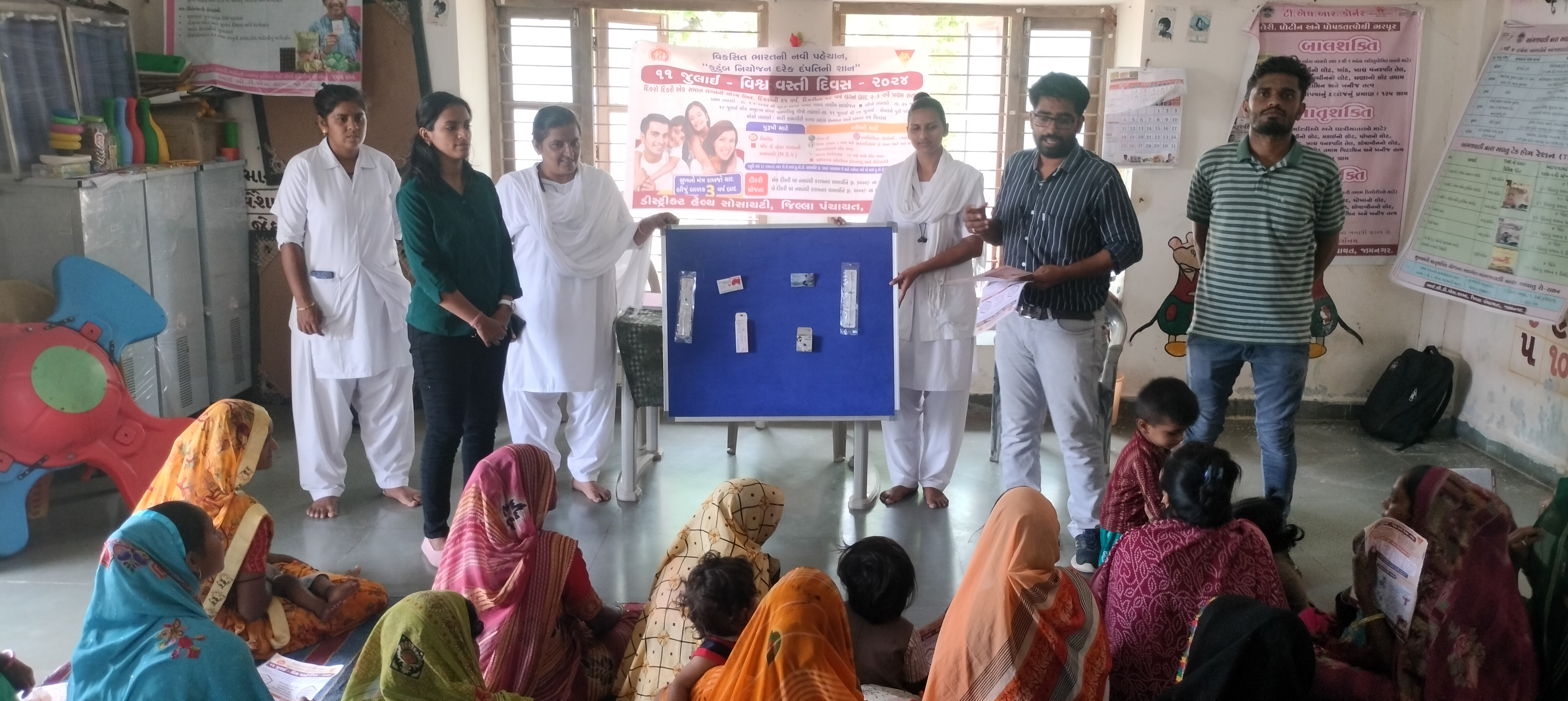 જોડીયા તાલુકાના પ્રાથમિક આરોગ્ય કેન્દ્ર હડિયાણા ની આંગણવાડી નંબર-૩ ખાતે વિસ્તાર માં ગામના બહેનો ને એકઠા કરી. ૧૧ જુલાઈ વિશ્વ વસ્તી દિવસ પ્રચાર પ્રસાર અંતર્ગત કુટુંબ નિયોજન માટે વિવિધ પદ્ધતિ કાયમી અને બિન કાયમી પદ્ધતિ વિષે વિગતવાર માહિતી આપવામાં આવી. કાયમી પદ્ધતિ માં સ્ત્રી નસબંધી તેમજ પુરુષ નસબંધી વિષે અને બિન કાયમી પદ્ધતિ નિરોધ , ઓરલ પિલ્સ , માલા , છાયા , અંતરા ઇન્જેક્શન ( દર ત્રણ મહીને એક્વાર લેવામાં આવતું ઇન્જેક્શન ) , કોપર-ટી ( ૫ વર્ષ માટે અને ૧૦ વર્ષ માટે ) પી.પી.ઓ.યુ.સી.ડી ડીલેવરી બાદ તુરંતજ મુકવામાં આવે છે ( ૫ વર્ષ માટે અને ૧૦ વર્ષ માટે ) જેવી વિવિધ પદ્ધતિ વિષે માહિતી આપવામાં આવી તેમજ કુટુંબ કલ્યાણ હેઠળ મળવાપાત્ર સેવાઓ અને યોજના વિષે વિગતવાર માર્ગદર્શન આપવામાં આવ્યું તેમજ પત્રિકા આપવામાં આવી. તેમજ કોલેરા રોગ વિષે માર્ગદર્શન અપાયું. કોલેરા એ આંતરડાનો તીવ્ર ચેપ છે તેના કારણે ઝાડા, ઉલટી થાય છે તેમજ ત્યારબાદ પ્રવાહી ઘટી જાય છે.