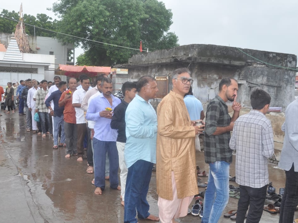 શ્રાવણ માસના પ્રારંભ સાથે શહેરના શિવાલયોમાં શિવ ભક્તોનું ઘોડાપૂર ઉમટી પડ્યું. સવારથી જ ઝરમર વરસાદી ઝાપટાં વચ્ચે શિવ ભક્તોની શિવ મંદિરોમાં લંબી કતારો જોવા મળી છે. વરસાદ વચ્ચે પણ ભક્તિનો અનેરો ઉત્સાહ જોવા મળ્યો હતો. શ્રાવણ માસનો પ્રથમ સોમવાર હોય શિવાલોયમાં સવારથી શિવ ભક્તો પૂજા અર્ચના અને અભિષેક માટે પહોંચ્યા હતા અને ભગવાન શિવની આરાધના કરી દર્શન કરી ધન્યતા અનુભવી હતી.