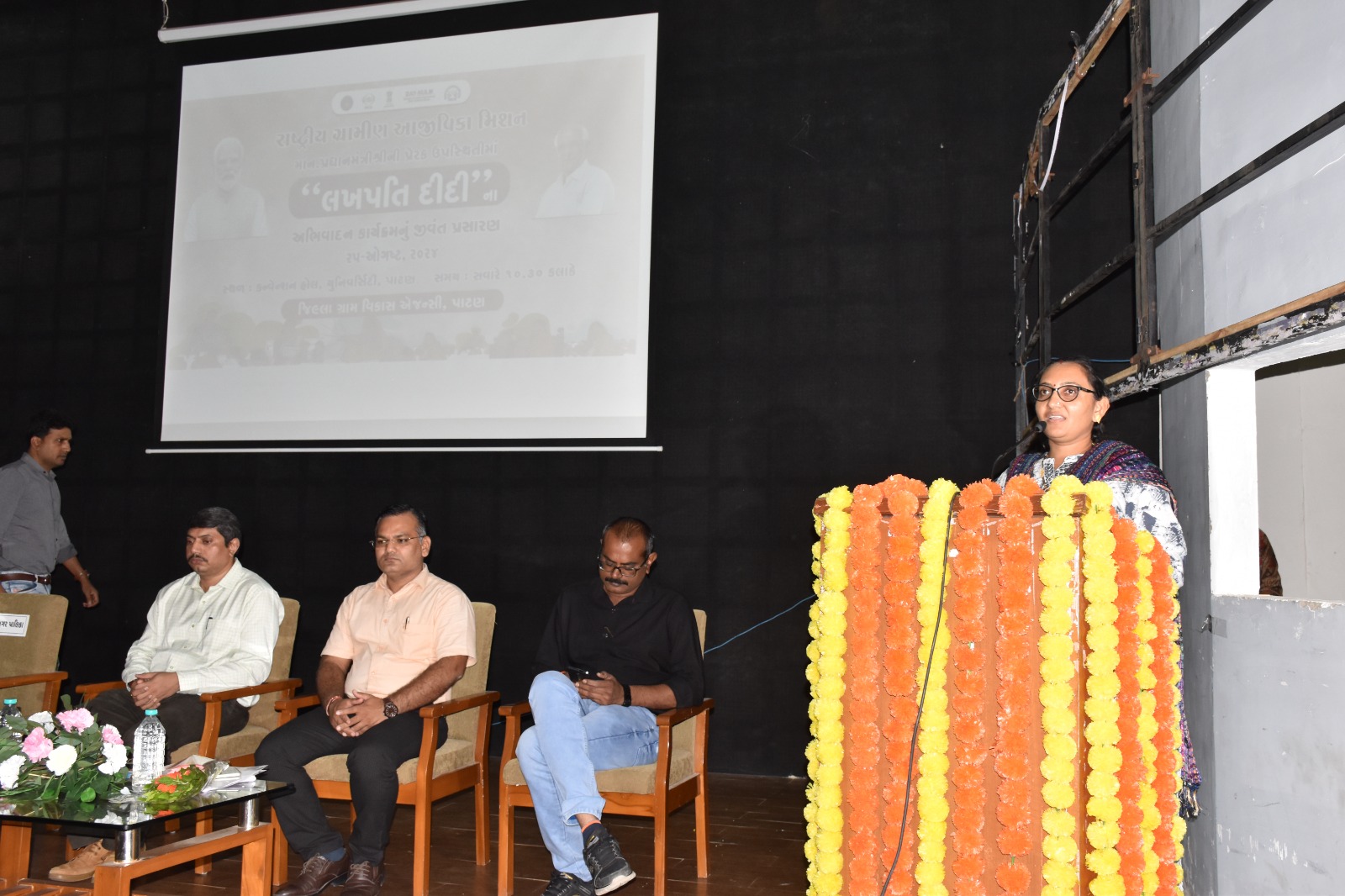 હેમચંદ્રાચાર્ય ઉત્તર ગુજરાત યુનિવર્સીટીના કન્વેન્શન હોલમાં નગરપાલિકાના પ્રમુખ હિરલબેન પરમારના અઘ્યક્ષસ્થાને ‘લખપતિ દીદી’ કાર્યક્રમ અન્વયે વિવિધ યોજનાઓના લાભાર્થીઓને લાભોનું વિતરણ કરવામાં આવ્યું હતું.